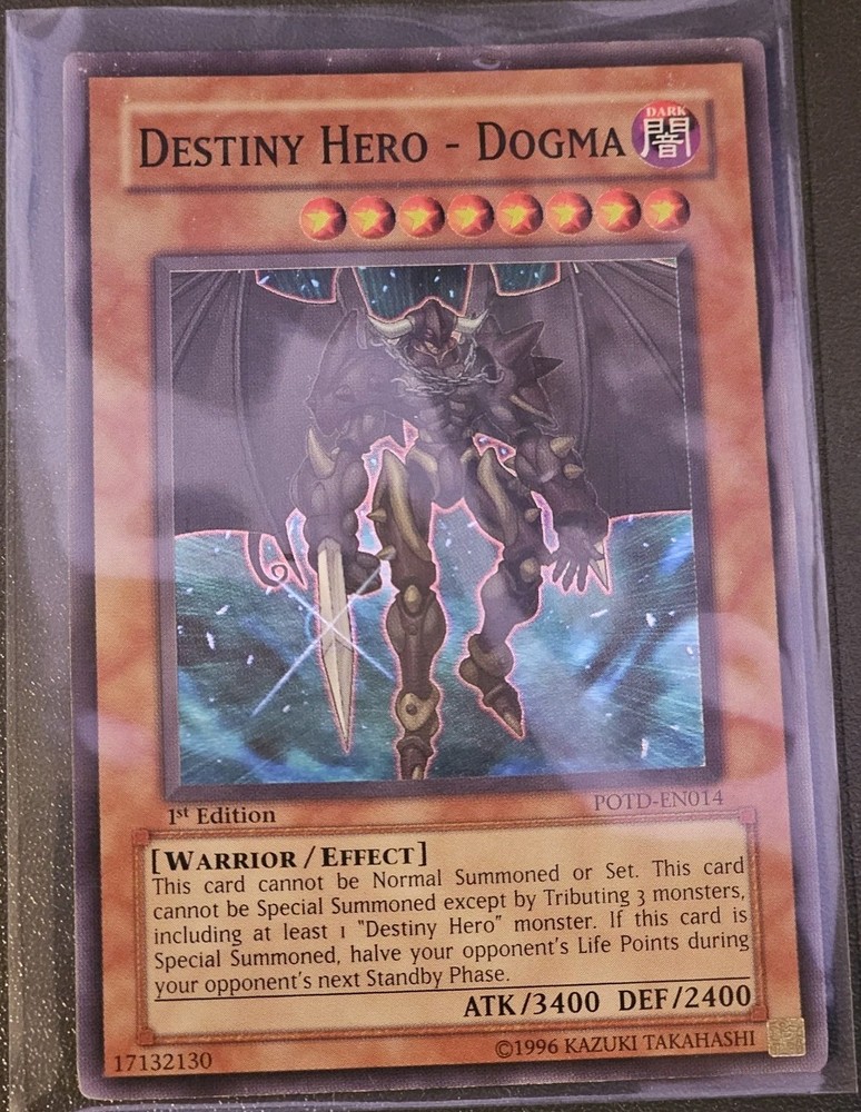 Destiny Hero - Dogma Holo 1st Edition POTD-EN014 Card will come safely wrapped in a bubble mailer. A piece of nostalgia to add to your collection. Message me with any question! Thank you...
