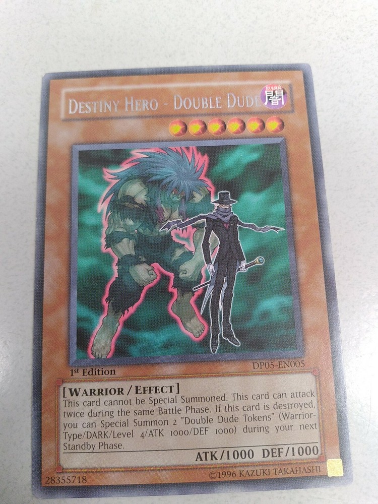 Destiny Hero - Double Dude - DP05-EN005 - Rare - 1st Edition. Card is in lightly played condition and ships in a standard card sleeve with one free random card