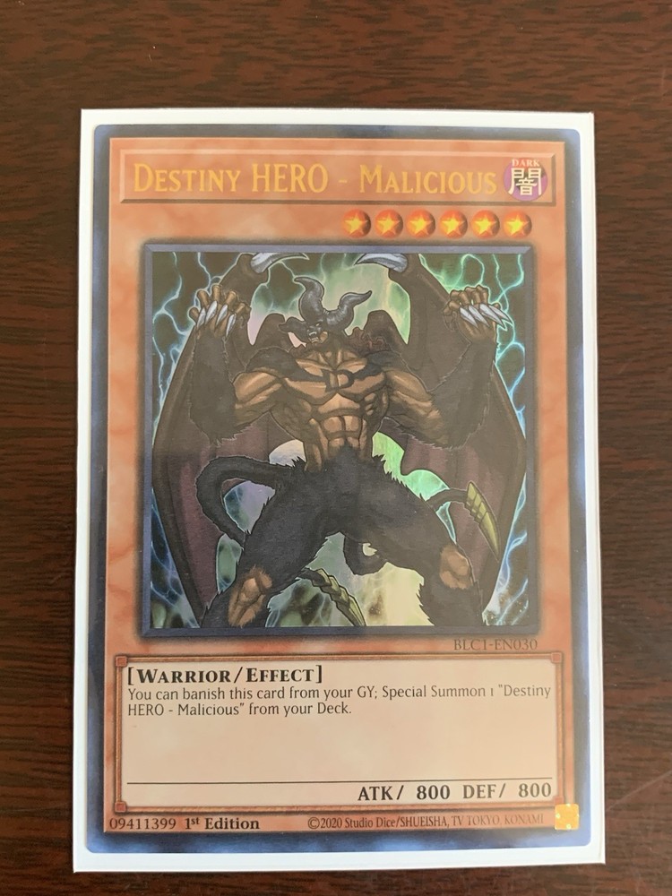 Destiny Hero - Malicious - BLC1-EN030 - Ultra Rare Silver - 1st Edition. Condition is Ungraded. Shipped with Canada Post Lettermail.