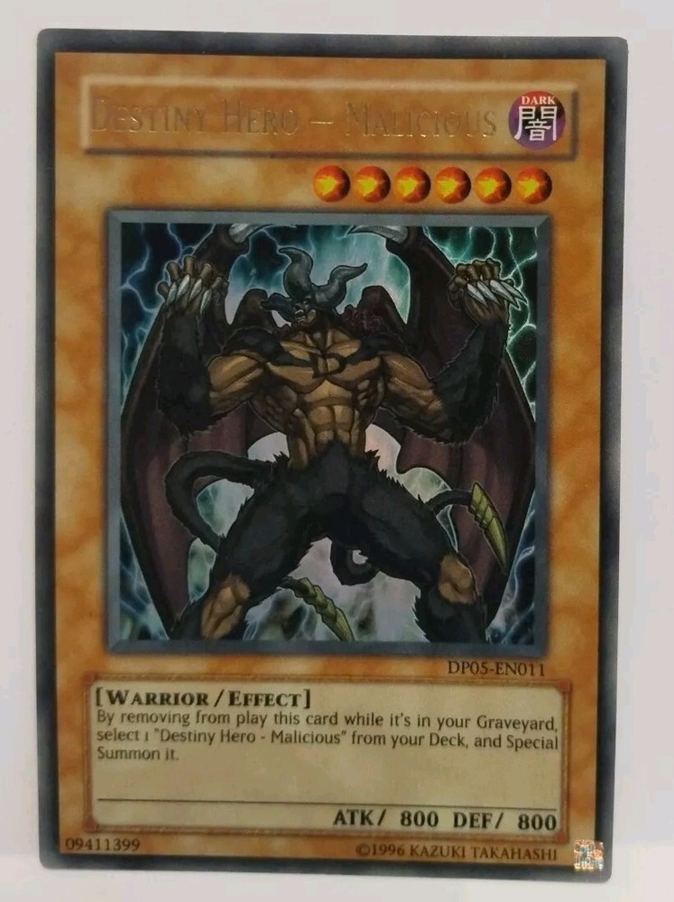 "Add the powerful Destiny HERO - Malicious card to your Yu-Gi-Oh! TCG collection with this Ultra Rare edition from the - Aster Phoenix - set. This English language card features a stunning Holo finish, making it a standout piece for any collector. Don't miss out on the opportunity to own this Unlimited edition card, perfect for enhancing your deck and dominating your opponents in battle."