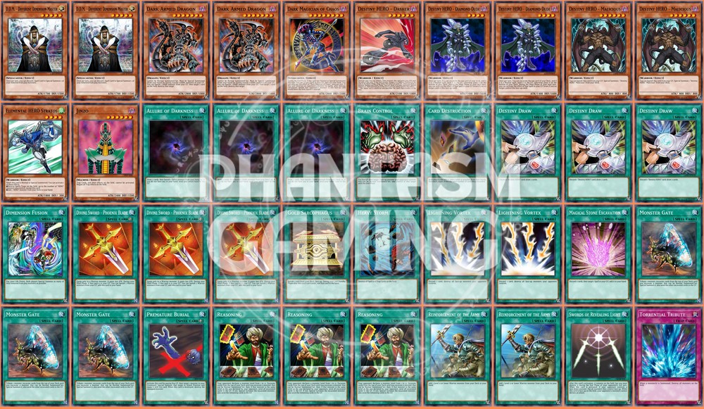 Deck Name: Diamond Dude Turbo (Phantom) (B) # Main Deck (40) 2 - D.D.M. - Different Dimension Master 2 - Dark Armed Dragon 1 - Dark Magician of Chaos 1 - Destiny HERO - Dasher 2 - Destiny HERO - Diamond Dude 2 - Destiny HERO - Malicious 1 - Elemental HERO Stratos 1 - Jinzo 3 - Allure of Darkness 1 - Brain Control 1 - Card Destruction 3 - Destiny Draw 1 - Dimension Fusion 3 - Divine Sword - Phoenix Blade 1 - Gold Sarcophagus 1 - Heavy Storm 2 - Lightning Vortex 1 - Magical Stone Excavation 3 - Monster Gate 1 - Premature Burial 3 - Reasoning 2 - Reinforcement of the Army 1 - Swords of Revealing Light 1 - Torrential Tribute You will receive all of the following cards listed above. Most cards will will be in near mint condition. In the case of certain older cards we will do our best but some cards may be light or even moderatly played in extreme condtions. Those conditions being the card has not been reprinted in a number of years and con no longer be easily purchased in light or near mint condition. Set, Rarity, and Edition will vary and cannot be special requested. These lists are constructed with least expensive rarities we have available in stock. All cards are play legal copies. Note: If purchasing a Yugioh Deck all Speed duel cards are 100% legal at all levels of play. Store Policies Here at PMG_LLC , we pride ourselves on having the best customer service around. If you have any questions or can't seem to find something that you want please do not hesitate to contact us. We will do our best to respond to all questions within one business day. Hours of Operation: Monday-Friday: 2:30pm - 10:00pm Saturday- 10:00am - 8:00pm Sunday 11:00am - 5:30pm Note: We are closed all national holidays. Info: Thank you for choosing PMG_LLC . We appreciate your business. We ship Monday through Friday to make sure you get your deck as quickly as possible. All orders priority orders can use combined shipping. In order to use the combined shipping your whole purchase needs to be checked out as one order. We ship once we have received your payment and payment has cleared. As always if you have any questions or concerns please feel free to contact us via email. Shipping Information: We ship Monday through Friday, barring national holidays during which the United States Postal Service is closed. If you purchase a card on Friday or Saturday please bear in mind it will not ship until Monday. US Shipping: First Class Mail : Free. Comes with tracking information. Priority Mail with Delivery Confirmation : $9.99 All orders are shipped in appropriate protective material inside bubble mailers. International Shipping: We do not offer international Shipping Return Policy: You must return items sold and fulfilled by PMG_LLC within 30 days of delivery to be eligible for a refund. Returns which are damaged in the mail due to improper return packaging will receive partial refunds. We will process a full refund for all items returned in their original condition. In order for us to process your full refund you must include the full name associated with the order as well as the eBay order number inside the return packaging. We will not process returns which do not include the buyer's name and order number. Requirements: Please return items with the original plastic packaging. Failure to do so may result in a partial refund. Also you must inform us of any returns you may wish to process before sending them back. Any items simply send back to us without prior contact will not be eligible for refunds. Important Notes Remember that to benefit from our domestic combined shipping on priority orders you must to pay in a single payment. If you place two separate priority orders you will be charged the $7.50 shipping fee for both orders. If you place multiple orders for Priority shipping you will be charged the corresponding shipping costs for each order, even if you place the orders on the same day. We do not refund shipping costs as we tend to package orders throughout the day and may not notice that you would otherwise have qualified for combined shipping. We want to provide you with 5 Star service and earn your Positive Feedback, so if for any reason you are not happy with your transaction, contact us before leaving feedback. Business Day - Our business day runs from Monday to Friday from 9am to 4pm, excluding US national holidays. Any orders placed or payments cleared less than 4 hours before the close of business will be considered orders from the following business day.