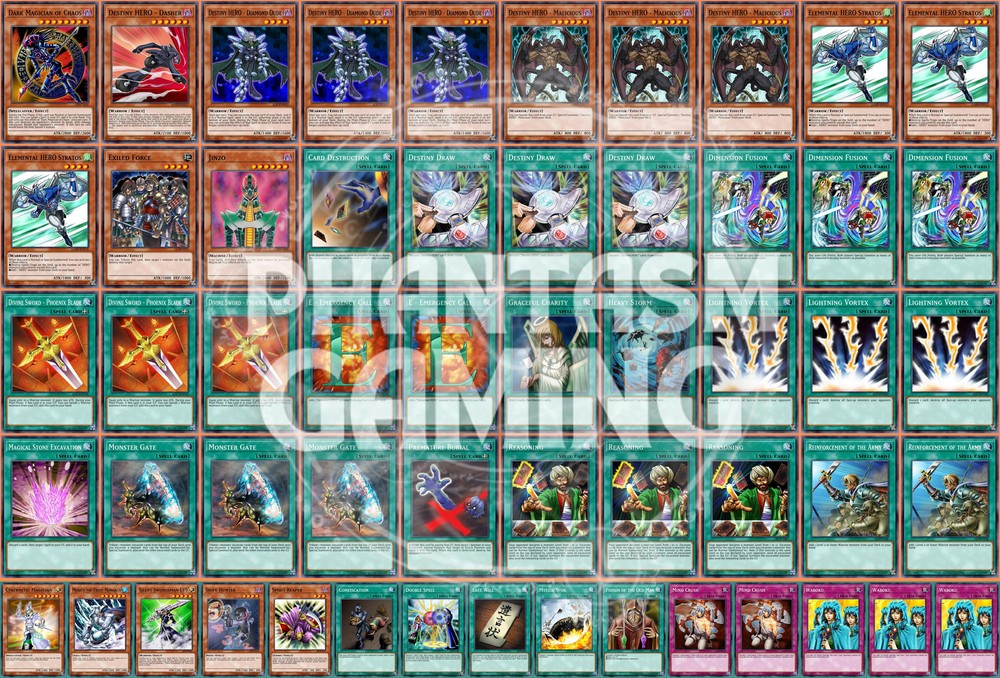 Deck Name: Diamond Dude Turbo (Airblade) (A) # Main Deck (40) 1 - Dark Magician of Chaos 1 - Destiny HERO - Dasher 3 - Destiny HERO - Diamond Dude 3 - Destiny HERO - Malicious 3 - Elemental HERO Stratos 1 - Exiled Force 1 - Jinzo 1 - Card Destruction 3 - Destiny Draw 3 - Dimension Fusion 3 - Divine Sword - Phoenix Blade 2 - E - Emergency Call 1 - Graceful Charity 1 - Heavy Storm 3 - Lightning Vortex 1 - Magical Stone Excavation 3 - Monster Gate 1 - Premature Burial 3 - Reasoning 2 - Reinforcement of the Army # Side Deck (15) 1 - Cybernetic Magician 1 - Mobius the Frost Monarch 1 - Silent Swordsman LV5 1 - Snipe Hunter 1 - Spirit Reaper 1 - Confiscation 1 - Double Spell 1 - Last Will 1 - Mystik Wok 1 - Poison of the Old Man 2 - Mind Crush 3 - Waboku You will receive all of the following cards listed above. Most cards will will be in near mint condition. In the case of certain older cards we will do our best but some cards may be light or even moderatly played in extreme condtions. Those conditions being the card has not been reprinted in a number of years and con no longer be easily purchased in light or near mint condition. Set, Rarity, and Edition will vary and cannot be special requested. These lists are constructed with least expensive rarities we have available in stock. All cards are play legal copies. Note: If purchasing a Yugioh Deck all Speed duel cards are 100% legal at all levels of play. Store Policies Here at PMG_LLC , we pride ourselves on having the best customer service around. If you have any questions or can't seem to find something that you want please do not hesitate to contact us. We will do our best to respond to all questions within one business day. Hours of Operation: Monday-Friday: 2:30pm - 10:00pm Saturday- 10:00am - 8:00pm Sunday 11:00am - 5:30pm Note: We are closed all national holidays. Info: Thank you for choosing PMG_LLC . We appreciate your business. We ship Monday through Friday to make sure you get your deck as quickly as possible. All orders priority orders can use combined shipping. In order to use the combined shipping your whole purchase needs to be checked out as one order. We ship once we have received your payment and payment has cleared. As always if you have any questions or concerns please feel free to contact us via email. Shipping Information: We ship Monday through Friday, barring national holidays during which the United States Postal Service is closed. If you purchase a card on Friday or Saturday please bear in mind it will not ship until Monday. US Shipping: First Class Mail : Free. Comes with tracking information. Priority Mail with Delivery Confirmation : $9.99 All orders are shipped in appropriate protective material inside bubble mailers. International Shipping: We do not offer international Shipping Return Policy: You must return items sold and fulfilled by PMG_LLC within 30 days of delivery to be eligible for a refund. Returns which are damaged in the mail due to improper return packaging will receive partial refunds. We will process a full refund for all items returned in their original condition. In order for us to process your full refund you must include the full name associated with the order as well as the eBay order number inside the return packaging. We will not process returns which do not include the buyer's name and order number. Requirements: Please return items with the original plastic packaging. Failure to do so may result in a partial refund. Also you must inform us of any returns you may wish to process before sending them back. Any items simply send back to us without prior contact will not be eligible for refunds. Important Notes Remember that to benefit from our domestic combined shipping on priority orders you must to pay in a single payment. If you place two separate priority orders you will be charged the $7.50 shipping fee for both orders. If you place multiple orders for Priority shipping you will be charged the corresponding shipping costs for each order, even if you place the orders on the same day. We do not refund shipping costs as we tend to package orders throughout the day and may not notice that you would otherwise have qualified for combined shipping. We want to provide you with 5 Star service and earn your Positive Feedback, so if for any reason you are not happy with your transaction, contact us before leaving feedback. Business Day - Our business day runs from Monday to Friday from 9am to 4pm, excluding US national holidays. Any orders placed or payments cleared less than 4 hours before the close of business will be considered orders from the following business day.