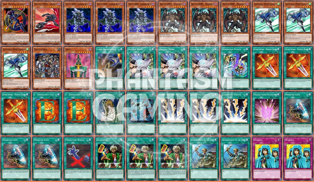Deck Name: Diamond Dude Turbo (Airblade) (B) # Main Deck (40) 1 - Dark Magician of Chaos 1 - Destiny HERO - Dasher 3 - Destiny HERO - Diamond Dude 3 - Destiny HERO - Malicious 3 - Elemental HERO Stratos 1 - Exiled Force 1 - Jinzo 1 - Card Destruction 3 - Destiny Draw 1 - Dimension Fusion 3 - Divine Sword - Phoenix Blade 2 - E - Emergency Call 1 - Graceful Charity 1 - Heavy Storm 3 - Lightning Vortex 1 - Magical Stone Excavation 3 - Monster Gate 1 - Premature Burial 3 - Reasoning 2 - Reinforcement of the Army 2 - Waboku You will receive all of the following cards listed above. Most cards will will be in near mint condition. In the case of certain older cards we will do our best but some cards may be light or even moderatly played in extreme condtions. Those conditions being the card has not been reprinted in a number of years and con no longer be easily purchased in light or near mint condition. Set, Rarity, and Edition will vary and cannot be special requested. These lists are constructed with least expensive rarities we have available in stock. All cards are play legal copies. Note: If purchasing a Yugioh Deck all Speed duel cards are 100% legal at all levels of play. Store Policies Here at PMG_LLC , we pride ourselves on having the best customer service around. If you have any questions or can't seem to find something that you want please do not hesitate to contact us. We will do our best to respond to all questions within one business day. Hours of Operation: Monday-Friday: 2:30pm - 10:00pm Saturday- 10:00am - 8:00pm Sunday 11:00am - 5:30pm Note: We are closed all national holidays. Info: Thank you for choosing PMG_LLC . We appreciate your business. We ship Monday through Friday to make sure you get your deck as quickly as possible. All orders priority orders can use combined shipping. In order to use the combined shipping your whole purchase needs to be checked out as one order. We ship once we have received your payment and payment has cleared. As always if you have any questions or concerns please feel free to contact us via email. Shipping Information: We ship Monday through Friday, barring national holidays during which the United States Postal Service is closed. If you purchase a card on Friday or Saturday please bear in mind it will not ship until Monday. US Shipping: First Class Mail : Free. Comes with tracking information. Priority Mail with Delivery Confirmation : $9.99 All orders are shipped in appropriate protective material inside bubble mailers. International Shipping: We do not offer international Shipping Return Policy: You must return items sold and fulfilled by PMG_LLC within 30 days of delivery to be eligible for a refund. Returns which are damaged in the mail due to improper return packaging will receive partial refunds. We will process a full refund for all items returned in their original condition. In order for us to process your full refund you must include the full name associated with the order as well as the eBay order number inside the return packaging. We will not process returns which do not include the buyer's name and order number. Requirements: Please return items with the original plastic packaging. Failure to do so may result in a partial refund. Also you must inform us of any returns you may wish to process before sending them back. Any items simply send back to us without prior contact will not be eligible for refunds. Important Notes Remember that to benefit from our domestic combined shipping on priority orders you must to pay in a single payment. If you place two separate priority orders you will be charged the $7.50 shipping fee for both orders. If you place multiple orders for Priority shipping you will be charged the corresponding shipping costs for each order, even if you place the orders on the same day. We do not refund shipping costs as we tend to package orders throughout the day and may not notice that you would otherwise have qualified for combined shipping. We want to provide you with 5 Star service and earn your Positive Feedback, so if for any reason you are not happy with your transaction, contact us before leaving feedback. Business Day - Our business day runs from Monday to Friday from 9am to 4pm, excluding US national holidays. Any orders placed or payments cleared less than 4 hours before the close of business will be considered orders from the following business day.