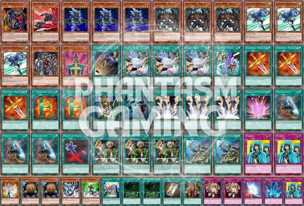 Deck Name: Diamond Dude Turbo (Airblade) (B) # Main Deck (40) 1 - Dark Magician of Chaos 1 - Destiny HERO - Dasher 3 - Destiny HERO - Diamond Dude 3 - Destiny HERO - Malicious 3 - Elemental HERO Stratos 1 - Exiled Force 1 - Jinzo 1 - Card Destruction 3 - Destiny Draw 1 - Dimension Fusion 3 - Divine Sword - Phoenix Blade 2 - E - Emergency Call 1 - Graceful Charity 1 - Heavy Storm 3 - Lightning Vortex 1 - Magical Stone Excavation 3 - Monster Gate 1 - Premature Burial 3 - Reasoning 2 - Reinforcement of the Army 2 - Waboku # Side Deck (15) 1 - Cybernetic Magician 2 - Kuriboh 1 - Mobius the Frost Monarch 1 - Silent Swordsman LV5 1 - Double Spell 2 - Giant Trunade 1 - Last Will 1 - Poison of the Old Man 2 - Mind Crush 1 - Mirror Force 1 - Torrential Tribute 1 - Waboku You will receive all of the following cards listed above. Most cards will will be in near mint condition. In the case of certain older cards we will do our best but some cards may be light or even moderatly played in extreme condtions. Those conditions being the card has not been reprinted in a number of years and con no longer be easily purchased in light or near mint condition. Set, Rarity, and Edition will vary and cannot be special requested. These lists are constructed with least expensive rarities we have available in stock. All cards are play legal copies. Note: If purchasing a Yugioh Deck all Speed duel cards are 100% legal at all levels of play. Store Policies Here at PMG_LLC , we pride ourselves on having the best customer service around. If you have any questions or can't seem to find something that you want please do not hesitate to contact us. We will do our best to respond to all questions within one business day. Hours of Operation: Monday-Friday: 2:30pm - 10:00pm Saturday- 10:00am - 8:00pm Sunday 11:00am - 5:30pm Note: We are closed all national holidays. Info: Thank you for choosing PMG_LLC . We appreciate your business. We ship Monday through Friday to make sure you get your deck as quickly as possible. All orders priority orders can use combined shipping. In order to use the combined shipping your whole purchase needs to be checked out as one order. We ship once we have received your payment and payment has cleared. As always if you have any questions or concerns please feel free to contact us via email. Shipping Information: We ship Monday through Friday, barring national holidays during which the United States Postal Service is closed. If you purchase a card on Friday or Saturday please bear in mind it will not ship until Monday. US Shipping: First Class Mail : Free. Comes with tracking information. Priority Mail with Delivery Confirmation : $9.99 All orders are shipped in appropriate protective material inside bubble mailers. International Shipping: We do not offer international Shipping Return Policy: You must return items sold and fulfilled by PMG_LLC within 30 days of delivery to be eligible for a refund. Returns which are damaged in the mail due to improper return packaging will receive partial refunds. We will process a full refund for all items returned in their original condition. In order for us to process your full refund you must include the full name associated with the order as well as the eBay order number inside the return packaging. We will not process returns which do not include the buyer's name and order number. Requirements: Please return items with the original plastic packaging. Failure to do so may result in a partial refund. Also you must inform us of any returns you may wish to process before sending them back. Any items simply send back to us without prior contact will not be eligible for refunds. Important Notes Remember that to benefit from our domestic combined shipping on priority orders you must to pay in a single payment. If you place two separate priority orders you will be charged the $7.50 shipping fee for both orders. If you place multiple orders for Priority shipping you will be charged the corresponding shipping costs for each order, even if you place the orders on the same day. We do not refund shipping costs as we tend to package orders throughout the day and may not notice that you would otherwise have qualified for combined shipping. We want to provide you with 5 Star service and earn your Positive Feedback, so if for any reason you are not happy with your transaction, contact us before leaving feedback. Business Day - Our business day runs from Monday to Friday from 9am to 4pm, excluding US national holidays. Any orders placed or payments cleared less than 4 hours before the close of business will be considered orders from the following business day.