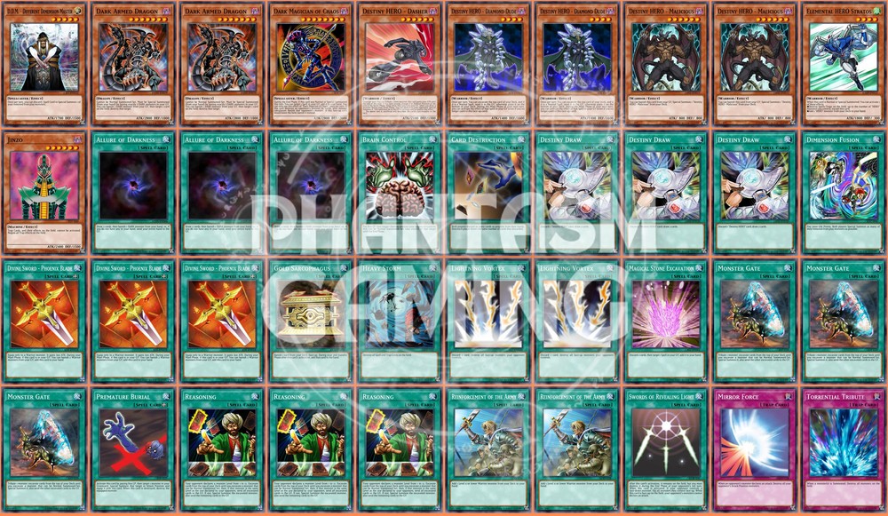 Deck Name: Diamond Dude Turbo (Phantom) (A) # Main Deck (40) 1 - D.D.M. - Different Dimension Master 2 - Dark Armed Dragon 1 - Dark Magician of Chaos 1 - Destiny HERO - Dasher 2 - Destiny HERO - Diamond Dude 2 - Destiny HERO - Malicious 1 - Elemental HERO Stratos 1 - Jinzo 3 - Allure of Darkness 1 - Brain Control 1 - Card Destruction 3 - Destiny Draw 1 - Dimension Fusion 3 - Divine Sword - Phoenix Blade 1 - Gold Sarcophagus 1 - Heavy Storm 2 - Lightning Vortex 1 - Magical Stone Excavation 3 - Monster Gate 1 - Premature Burial 3 - Reasoning 2 - Reinforcement of the Army 1 - Swords of Revealing Light 1 - Mirror Force 1 - Torrential Tribute You will receive all of the following cards listed above. Most cards will will be in near mint condition. In the case of certain older cards we will do our best but some cards may be light or even moderatly played in extreme condtions. Those conditions being the card has not been reprinted in a number of years and con no longer be easily purchased in light or near mint condition. Set, Rarity, and Edition will vary and cannot be special requested. These lists are constructed with least expensive rarities we have available in stock. All cards are play legal copies. Note: If purchasing a Yugioh Deck all Speed duel cards are 100% legal at all levels of play. Store Policies Here at PMG_LLC , we pride ourselves on having the best customer service around. If you have any questions or can't seem to find something that you want please do not hesitate to contact us. We will do our best to respond to all questions within one business day. Hours of Operation: Monday-Friday: 2:30pm - 10:00pm Saturday- 10:00am - 8:00pm Sunday 11:00am - 5:30pm Note: We are closed all national holidays. Info: Thank you for choosing PMG_LLC . We appreciate your business. We ship Monday through Friday to make sure you get your deck as quickly as possible. All orders priority orders can use combined shipping. In order to use the combined shipping your whole purchase needs to be checked out as one order. We ship once we have received your payment and payment has cleared. As always if you have any questions or concerns please feel free to contact us via email. Shipping Information: We ship Monday through Friday, barring national holidays during which the United States Postal Service is closed. If you purchase a card on Friday or Saturday please bear in mind it will not ship until Monday. US Shipping: First Class Mail : Free. Comes with tracking information. Priority Mail with Delivery Confirmation : $9.99 All orders are shipped in appropriate protective material inside bubble mailers. International Shipping: We do not offer international Shipping Return Policy: You must return items sold and fulfilled by PMG_LLC within 30 days of delivery to be eligible for a refund. Returns which are damaged in the mail due to improper return packaging will receive partial refunds. We will process a full refund for all items returned in their original condition. In order for us to process your full refund you must include the full name associated with the order as well as the eBay order number inside the return packaging. We will not process returns which do not include the buyer's name and order number. Requirements: Please return items with the original plastic packaging. Failure to do so may result in a partial refund. Also you must inform us of any returns you may wish to process before sending them back. Any items simply send back to us without prior contact will not be eligible for refunds. Important Notes Remember that to benefit from our domestic combined shipping on priority orders you must to pay in a single payment. If you place two separate priority orders you will be charged the $7.50 shipping fee for both orders. If you place multiple orders for Priority shipping you will be charged the corresponding shipping costs for each order, even if you place the orders on the same day. We do not refund shipping costs as we tend to package orders throughout the day and may not notice that you would otherwise have qualified for combined shipping. We want to provide you with 5 Star service and earn your Positive Feedback, so if for any reason you are not happy with your transaction, contact us before leaving feedback. Business Day - Our business day runs from Monday to Friday from 9am to 4pm, excluding US national holidays. Any orders placed or payments cleared less than 4 hours before the close of business will be considered orders from the following business day.