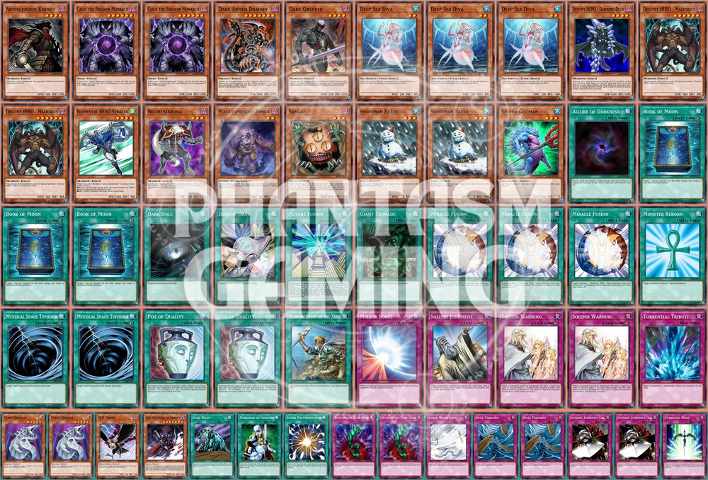 Deck Name: Diva Hero (Starstrike) (A) # Main Deck (40) 1 - Armageddon Knight 2 - Caius the Shadow Monarch 1 - Dark Armed Dragon 1 - Dark Grepher 3 - Deep Sea Diva 1 - Destiny HERO - Diamond Dude 2 - Destiny HERO - Malicious 1 - Elemental HERO Stratos 1 - Necro Gardna 1 - Plaguespreader Zombie 1 - Sangan 2 - Snowman Eater 1 - Spined Gillman 1 - Allure of Darkness 3 - Book of Moon 1 - Dark Hole 1 - Destiny Draw 1 - Future Fusion 1 - Giant Trunade 3 - Miracle Fusion 1 - Monster Reborn 2 - Mystical Space Typhoon 2 - Pot of Duality 1 - Reinforcement of the Army 1 - Mirror Force 1 - Solemn Judgment 2 - Solemn Warning 1 - Torrential Tribute # Side Deck (15) 2 - Cyber Dragon 1 - D.D. Crow 1 - Gorz the Emissary of Darkness 1 - Cold Wave 1 - Nobleman of Crossout 1 - Super Polymerization 2 - Bottomless Trap Hole 1 - Chain Whirlwind 2 - Dust Tornado 2 - Gottoms' Emergency Call 1 - Starlight Road You will receive all of the following cards listed above. Most cards will will be in near mint condition. In the case of certain older cards we will do our best but some cards may be light or even moderatly played in extreme condtions. Those conditions being the card has not been reprinted in a number of years and con no longer be easily purchased in light or near mint condition. Set, Rarity, and Edition will vary and cannot be special requested. These lists are constructed with least expensive rarities we have available in stock. All cards are play legal copies. Note: If purchasing a Yugioh Deck all Speed duel cards are 100% legal at all levels of play. Store Policies Here at PMG_LLC , we pride ourselves on having the best customer service around. If you have any questions or can't seem to find something that you want please do not hesitate to contact us. We will do our best to respond to all questions within one business day. Hours of Operation: Monday-Friday: 2:30pm - 10:00pm Saturday- 10:00am - 8:00pm Sunday 11:00am - 5:30pm Note: We are closed all national holidays. Info: Thank you for choosing PMG_LLC . We appreciate your business. We ship Monday through Friday to make sure you get your deck as quickly as possible. All orders priority orders can use combined shipping. In order to use the combined shipping your whole purchase needs to be checked out as one order. We ship once we have received your payment and payment has cleared. As always if you have any questions or concerns please feel free to contact us via email. Shipping Information: We ship Monday through Friday, barring national holidays during which the United States Postal Service is closed. If you purchase a card on Friday or Saturday please bear in mind it will not ship until Monday. US Shipping: First Class Mail : Free. Comes with tracking information. Priority Mail with Delivery Confirmation : $9.99 All orders are shipped in appropriate protective material inside bubble mailers. International Shipping: We do not offer international Shipping Return Policy: You must return items sold and fulfilled by PMG_LLC within 30 days of delivery to be eligible for a refund. Returns which are damaged in the mail due to improper return packaging will receive partial refunds. We will process a full refund for all items returned in their original condition. In order for us to process your full refund you must include the full name associated with the order as well as the eBay order number inside the return packaging. We will not process returns which do not include the buyer's name and order number. Requirements: Please return items with the original plastic packaging. Failure to do so may result in a partial refund. Also you must inform us of any returns you may wish to process before sending them back. Any items simply send back to us without prior contact will not be eligible for refunds. Important Notes Remember that to benefit from our domestic combined shipping on priority orders you must to pay in a single payment. If you place two separate priority orders you will be charged the $7.50 shipping fee for both orders. If you place multiple orders for Priority shipping you will be charged the corresponding shipping costs for each order, even if you place the orders on the same day. We do not refund shipping costs as we tend to package orders throughout the day and may not notice that you would otherwise have qualified for combined shipping. We want to provide you with 5 Star service and earn your Positive Feedback, so if for any reason you are not happy with your transaction, contact us before leaving feedback. Business Day - Our business day runs from Monday to Friday from 9am to 4pm, excluding US national holidays. Any orders placed or payments cleared less than 4 hours before the close of business will be considered orders from the following business day.