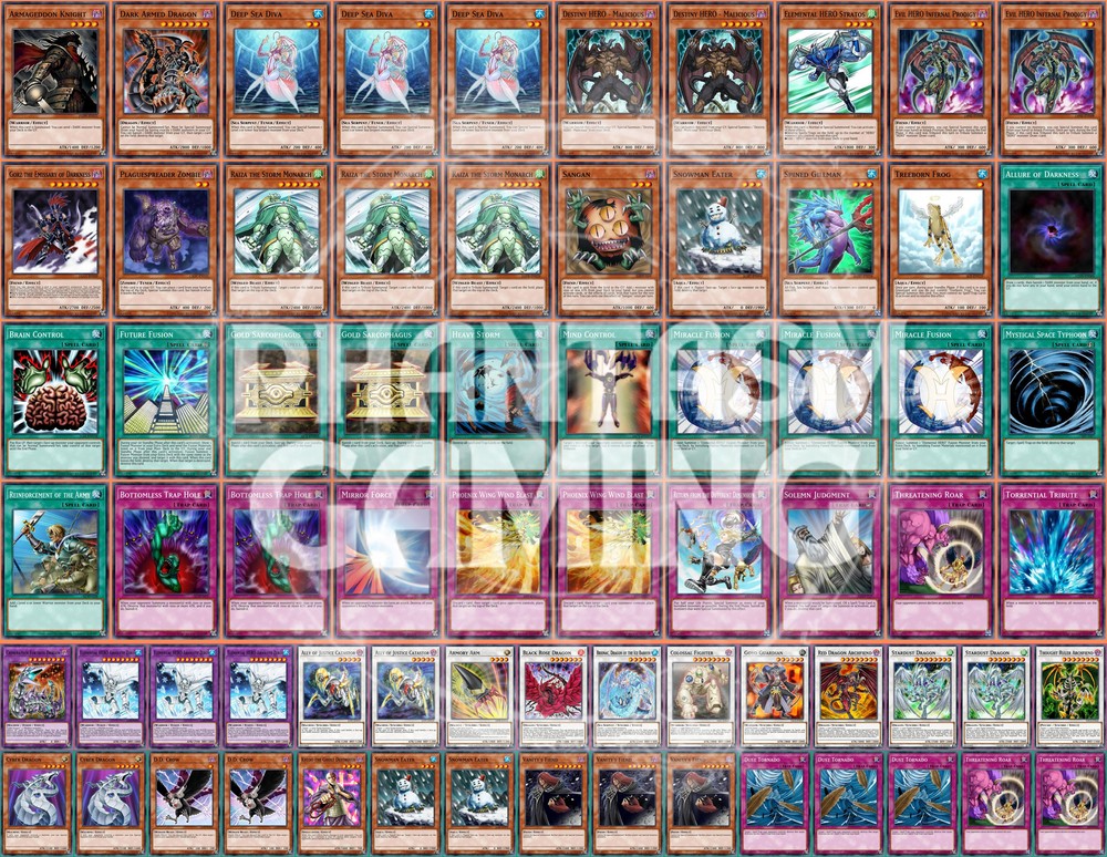 Deck Name: Diva Hero (B) (Edison) # Main Deck (40) 1 - Armageddon Knight 1 - Dark Armed Dragon 3 - Deep Sea Diva 2 - Destiny HERO - Malicious 1 - Elemental HERO Stratos 2 - Evil HERO Infernal Prodigy 1 - Gorz the Emissary of Darkness 1 - Plaguespreader Zombie 3 - Raiza the Storm Monarch 1 - Sangan 1 - Snowman Eater 1 - Spined Gillman 1 - Treeborn Frog 1 - Allure of Darkness 1 - Brain Control 1 - Future Fusion 2 - Gold Sarcophagus 1 - Heavy Storm 1 - Mind Control 3 - Miracle Fusion 1 - Mystical Space Typhoon 1 - Reinforcement of the Army 2 - Bottomless Trap Hole 1 - Mirror Force 2 - Phoenix Wing Wind Blast 1 - Return from the Different Dimension 1 - Solemn Judgment 1 - Threatening Roar 1 - Torrential Tribute # Extra Deck (15) 1 - Chimeratech Fortress Dragon 3 - Elemental HERO Absolute Zero 2 - Ally of Justice Catastor 1 - Armory Arm 1 - Black Rose Dragon 1 - Brionac, Dragon of the Ice Barrier 1 - Colossal Fighter 1 - Goyo Guardian 1 - Red Dragon Archfiend 2 - Stardust Dragon 1 - Thought Ruler Archfiend # Side Deck (15) 2 - Cyber Dragon 2 - D.D. Crow 1 - Kycoo the Ghost Destroyer 2 - Snowman Eater 3 - Vanity's Fiend 3 - Dust Tornado 2 - Threatening Roar You will receive all of the following cards listed above. Most cards will will be in near mint condition. In the case of certain older cards we will do our best but some cards may be light or even moderatly played in extreme condtions. Those conditions being the card has not been reprinted in a number of years and con no longer be easily purchased in light or near mint condition. Set, Rarity, and Edition will vary and cannot be special requested. These lists are constructed with least expensive rarities we have available in stock. All cards are play legal copies. Note: If purchasing a Yugioh Deck all Speed duel cards are 100% legal at all levels of play. Store Policies Here at PMG_LLC , we pride ourselves on having the best customer service around. If you have any questions or can't seem to find something that you want please do not hesitate to contact us. We will do our best to respond to all questions within one business day. Hours of Operation: Monday-Friday: 2:30pm - 10:00pm Saturday- 10:00am - 8:00pm Sunday 11:00am - 5:30pm Note: We are closed all national holidays. Info: Thank you for choosing PMG_LLC . We appreciate your business. We ship Monday through Friday to make sure you get your deck as quickly as possible. All orders priority orders can use combined shipping. In order to use the combined shipping your whole purchase needs to be checked out as one order. We ship once we have received your payment and payment has cleared. As always if you have any questions or concerns please feel free to contact us via email. Shipping Information: We ship Monday through Friday, barring national holidays during which the United States Postal Service is closed. If you purchase a card on Friday or Saturday please bear in mind it will not ship until Monday. US Shipping: First Class Mail : Free. Comes with tracking information. Priority Mail with Delivery Confirmation : $9.99 All orders are shipped in appropriate protective material inside bubble mailers. International Shipping: We do not offer international Shipping Return Policy: You must return items sold and fulfilled by PMG_LLC within 30 days of delivery to be eligible for a refund. Returns which are damaged in the mail due to improper return packaging will receive partial refunds. We will process a full refund for all items returned in their original condition. In order for us to process your full refund you must include the full name associated with the order as well as the eBay order number inside the return packaging. We will not process returns which do not include the buyer's name and order number. Requirements: Please return items with the original plastic packaging. Failure to do so may result in a partial refund. Also you must inform us of any returns you may wish to process before sending them back. Any items simply send back to us without prior contact will not be eligible for refunds. Important Notes Remember that to benefit from our domestic combined shipping on priority orders you must to pay in a single payment. If you place two separate priority orders you will be charged the $7.50 shipping fee for both orders. If you place multiple orders for Priority shipping you will be charged the corresponding shipping costs for each order, even if you place the orders on the same day. We do not refund shipping costs as we tend to package orders throughout the day and may not notice that you would otherwise have qualified for combined shipping. We want to provide you with 5 Star service and earn your Positive Feedback, so if for any reason you are not happy with your transaction, contact us before leaving feedback. Business Day - Our business day runs from Monday to Friday from 9am to 4pm, excluding US national holidays. Any orders placed or payments cleared less than 4 hours before the close of business will be considered orders from the following business day.