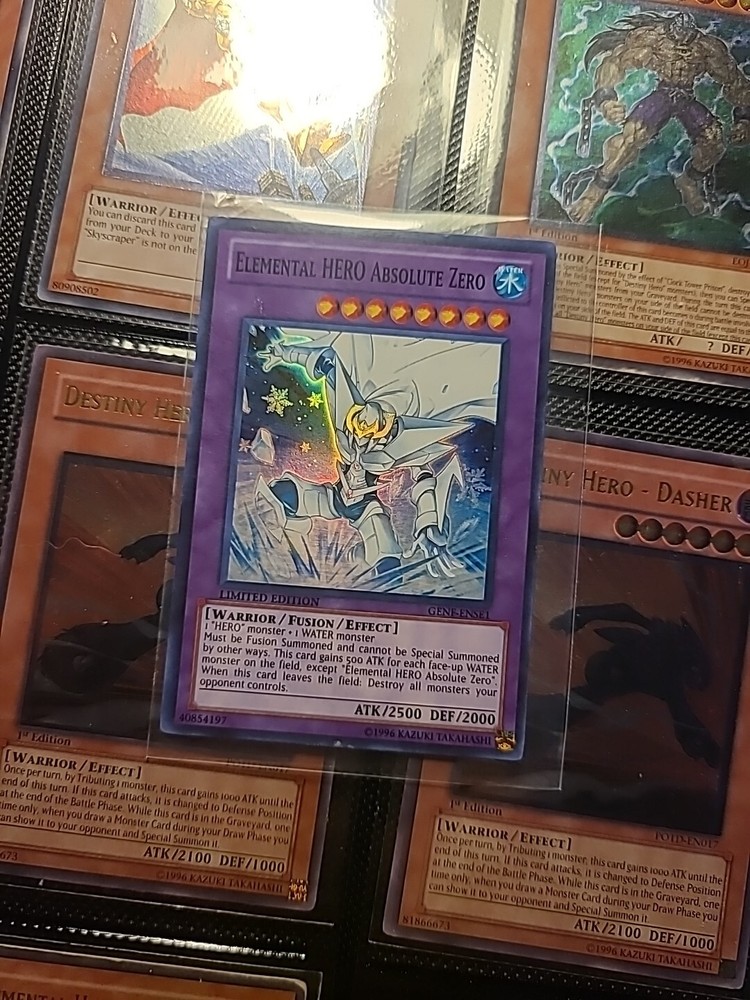 Up for sale is a Super Rare Elemental Hero Absolute Zero card from the Yu-Gi-Oh! TCG. This card is the GENF-ENSE1 version and has been lightly played, with excellent condition. It is recommended for ages 7 years and up and is a great addition to any Yu-Gi-Oh collector's deck. Whether you're a fan of the Elemental Hero series or just love rare cards, this is a must-have. Don't miss out on the chance to add this Super Rare card to your collection!