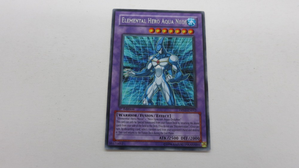 Welcome to Great_Deals_On_CollectiblesUNITES STATESWe are in the retail hobby sector and have been since 1991UNITES STATESWe sell sportscards,gaming cards,comic books,action figures,plush toys and various other hobby related itemsUNITES STATESWe have been on Ebay since 1999UNITES STATESWe try to make buyers experience on EBAY as satisfying as possibleUNITES STATESOur feedback on Ebay speaks volumesUNITES STATESEvery item we have up for auction is LIVE and ready to be shipped upon paymentUNITES STATES If you have any questions feel free to contact us,thanks for showing interestUNITES STATES YUGIOH You are bidding on ELEMENTAL HERO AQUA NEOS FUSION 1ST EDITION DP03-EN012 RARE YUGIOH NM