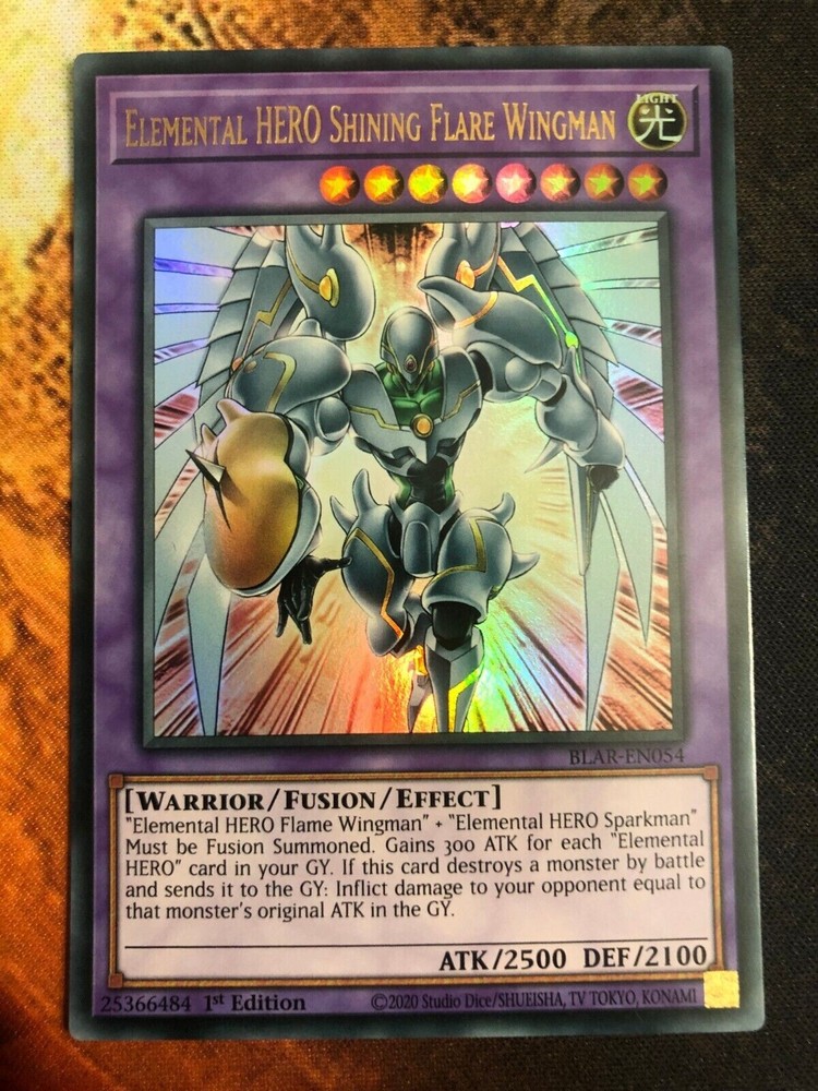 You are bidding on : 1 x Yu-Gi-Oh Battles of Legend: Armageddon ELEMENTAL HERO SHINING FLARE WINGMAN (Ultra Rare - 1st Edition) BLAR-EN054 All cards are in Near Mint condition unless specified Pictures are stock pictures ONLY it is not of the actual card How we identify the condition of the card: Near Mint: Most of the time cards in this condition are pack fresh but, the card may have minor flaws that are not visible with a quick inspection, small white dots or scratches that you have to closely examine the card to see. Excellent: Overall the card looks near mint but may have minor scratches, slightly worn edges that are visible but they do not interfere with the way the card looks. Lightly Played: Similar to a card in excellent condition except there is more whitening around the edges and the corners are a little more worn or slight bends or creases that are visible. There might be some slight whitening on the back or front of the card. Imperfections will be visible with a quick inspection. When the card is sleeved the imperfections will not be noticeable and the card will look just like the rest of your cards Played: There is a large amount of whitening around the edges and the corners have a good amount of damage, many scratches, bends and/or creases on the card. When the card is sleeved it can still be played Shipping and Handling : Canada Shipping is $1.50 CAD Tracking is offered for $13 CAD BUT tracking is required on any purchases that are over $50 CAD Please contact us for combined shipping if interested in purchasing multiple cards before paying USA Shipping is $1.99 CAD Regular Mail for all orders under $19.99 Shipping is $7.99 CAD with tracking for all orders $19.99 and over Please contact us for combined shipping if interested in purchasing multiple cards before paying INTERNATIONAL Shipping is $4.99 CAD with regular mail Tracking is offered for $29.99 CAD BUT tracking is required for purchases over $50 CAD Please contact us for combined shipping if interested in purchasing multiple cards before you pay Combined shipping: We offer combined shipping: each and every additional item after the first one is only $0.25 (25 cents). To obtain combined shipping fees, please use the shopping cart or ask for the combined shipping invoice BEFORE you pay. If you pay item-by-item, right away after the purchase, we will not be able to offer you combined shipping anymore. Handling Your order will be shipped 1-3 business days after payment has been received *“Business days” are normal weekdays. Saturdays, Sundays, and major holidays do not count as business days. Cards purchased are packaged and shipped in a sleeve, toploaders, a team bag and an envelope to ensure protection of cards Payment : Payments should be made within 5 days after purchase Epic Cards and Games Any questions feel free to email us and allow 1 day for a response. Thanks for looking! Sales Tax (Canada Only) : Purchases made by Canadian residents are subject to applicable GST/HST, depending on your province/territory. (If you do not agree to this, please do not bid. We have a registered business in Canada and are required by law to charge taxes to anything shipped within the country.) Thank you for shopping with Epic Cards and Games