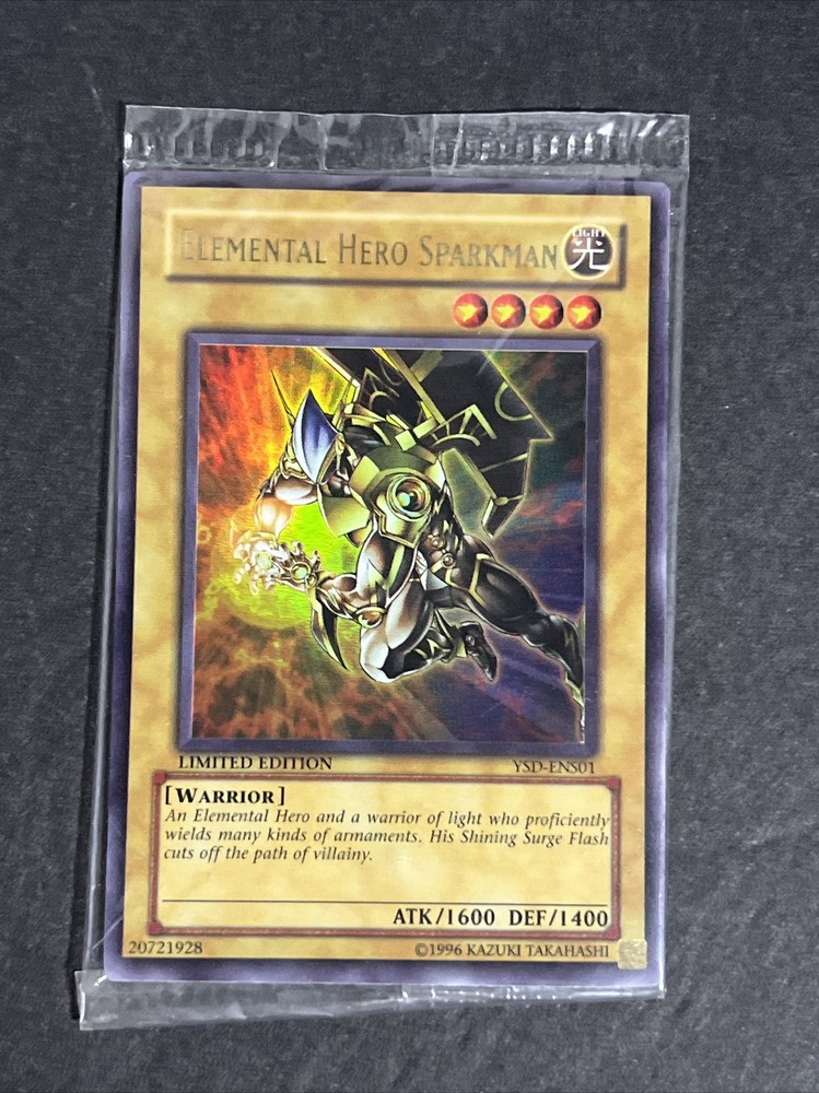 Sealed!! Elemental HERO Sparkman is a limited edition card that is perfect for any Yu-Gi-Oh! TCG collector. This ultra rare card features a stunning design that is sure to impress. Add it to your collection today!