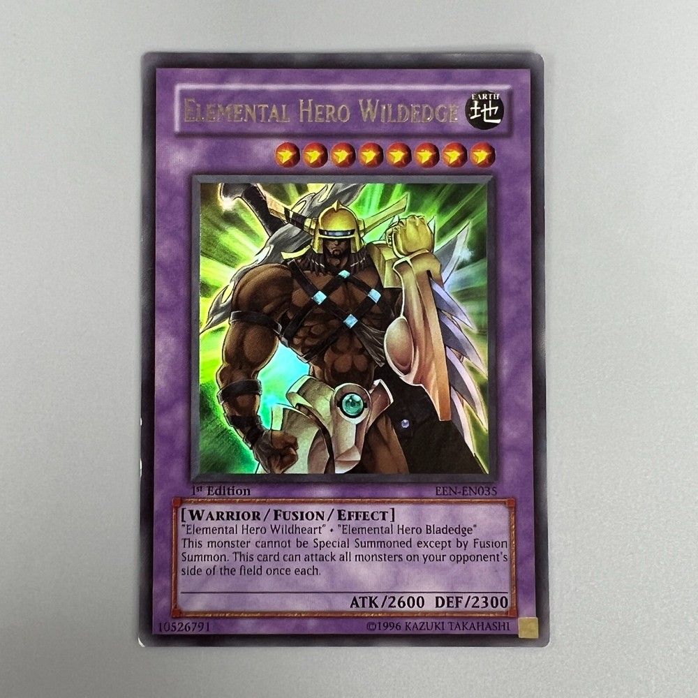 Just got this amazing 1st edition Elemental Hero Wildedge card and it's in perfect condition! The seller packaged it so carefully in a top-loader and envelope. As a longtime Yu-Gi-Oh collector, I'm thrilled to add this classic 1996 card to my hero deck. The card arrived quickly and looks even better than expected. Definitely buying from The Monster Merchants again!