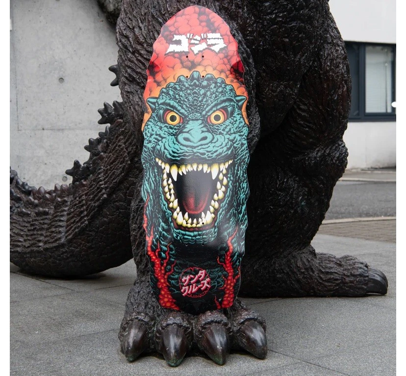 BRAND NEW & SEALED. Currently sold out!! DM FOR ANY QUESTIONS. Unstoppable forces collide when the original King of the Monsters along with its legendary cast of kaiju, joins forces with Santa Cruz Skateboards to release our exclusive, officially licensed Godzilla collection.*Shown with original hand drawn illustration (not included) Santa Cruz Skateboards Godzilla Destroyer deck featuring spot gloss and silver mirror foil graphics, Godzilla vs. Santa Cruz deck top graphics and laser engraved Godzilla logo. Extra thick, custom Godzilla shaped deck for destroying spots. 7 Ply North American Maple, pressed individually using epoxy - making a strong, responsive deck with long lasting pop and consistent concave and kick. Old School concave is a blast from the past. With a comfortable side to side concave and continuous tail kick OS concave gives you easy foot placement on cruisers, shaped, and old school boards with longer tail than nose.