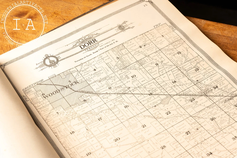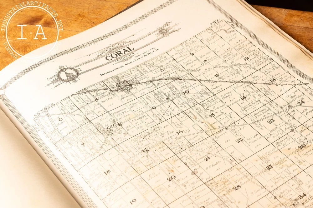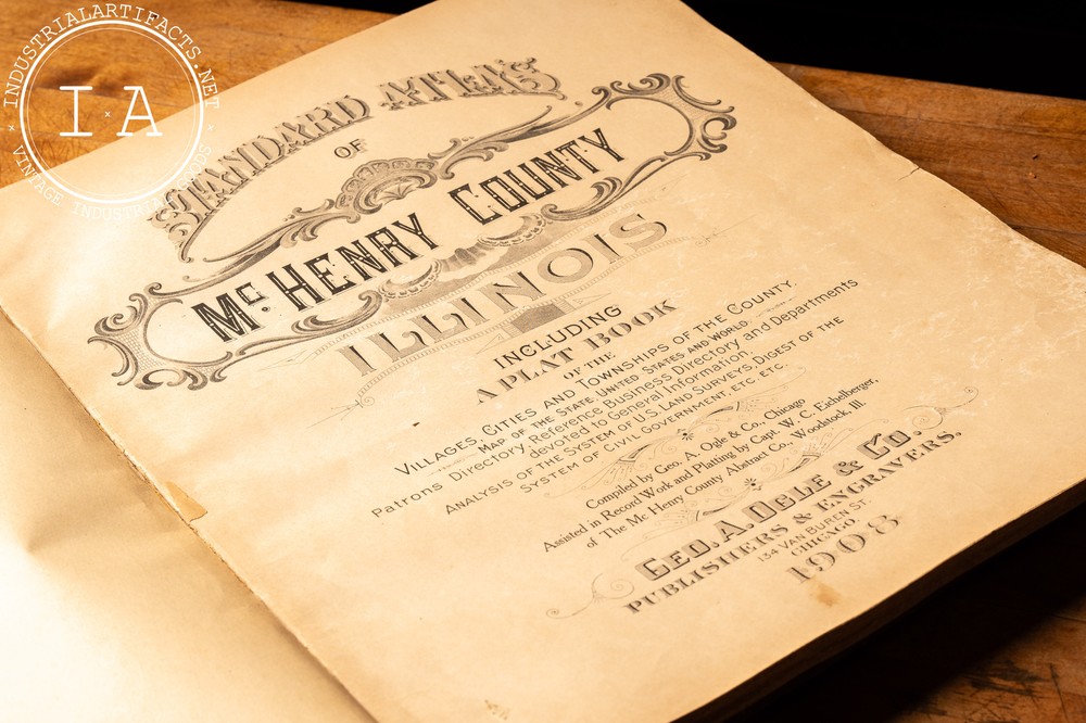 1908; publ. by George A. Ogle & Co. - Chicago Antique atlas from the Northern Illinois county. This piece features lettering and engravings depicting the various municipalities in McHenry County. Ornate borders and graphics grace the pages of this historical piece of memorabilia. Exhibits moderate signs of wear including scuffs, tears, and pages coming undone from the binding. The binding is very brittle and care must be taken when going through the pages. 16" W x 18" H Please refer to photos regarding condition. For more information regarding delivery of your order, please review our shipping Terms and Conditions below. MM - C-9886 - 092724 TERMS & CONDITIONS PARCEL SHIPPING We ship smaller objects with UPS and USPS. All shipments are fully insured and adhere to carrier packing guidelines. Shipping costs for smaller items are free up to $100. If a parcel shipment exceeds $100, the remaining costs will be the responsibility of the buyer. Please reach out to us for a free shipping quote on items you are interested in purchasing. FREIGHT SHIPPING All shipments are considered FOB (Free on Board), meaning the buyer assumes all responsibility for the shipment the moment it leaves our loading dock. Any risk of loss or damage after this point is assumed solely by the buyer. In the event of damage or loss, we are happy to assist buyers in the claims process if we helped coordinate the shipment. However, we are not responsible for any damages, loss, or deductibles. Free freight shipping to a terminal is available for most large items (some terms apply). Free shipping is only offered to orders in the continental US. Our shop also works with a number of private drivers, and we are happy to assist buyers in finding private shipping for their order if desired. Please reach out to us for more information about your shipping options. A 2 - 4 week period is to be expected for freight delivery. Packaging your freight safely and contracting with the most valuable broker is our highest priority in order to save you money and time. Please provide a phone number for our shipping carriers to contact you regarding delivery or pickup. This is required after purchase. INTERNATIONAL CUSTOMERS Due to the high value of some of our items, many items shipped internationally cannot always be insured for their full value. In these cases, we will insure them to the full extent available, but will not be responsible for additional damages above the available insured amount. International items are shipped via USPS or UPS; please become familiar with the insurance policy associated with your country. BUYERS ARE RESPONSIBLE FOR ANY DUTIES AND TAXES THAT MAY APPLY. OTHER Our items may contain rust, dust, grease, or grit. All of our pieces are reclaimed from industrial environments where they may have been exposed to years of use and weathering. As such, each piece has character. Industrial Artifacts cannot be held responsible for matters of taste regarding the character of a piece. Bulbs for light fixtures are not included unless specified. Returns: Returns are not accepted. Refunds: A 10% restocking fee will be applied to refunded purchases wherein the buyer no longer wishes to complete the transaction. Free parcel shipping is subject to limitations. Please carefully review our shipping Terms and Conditions here prior to purchasing.