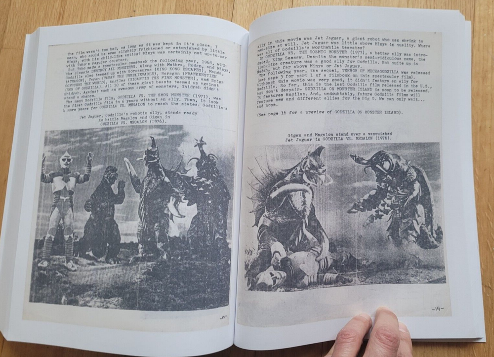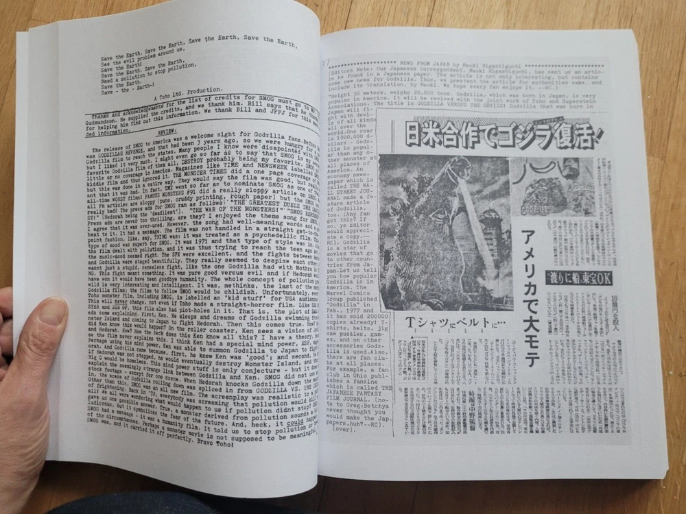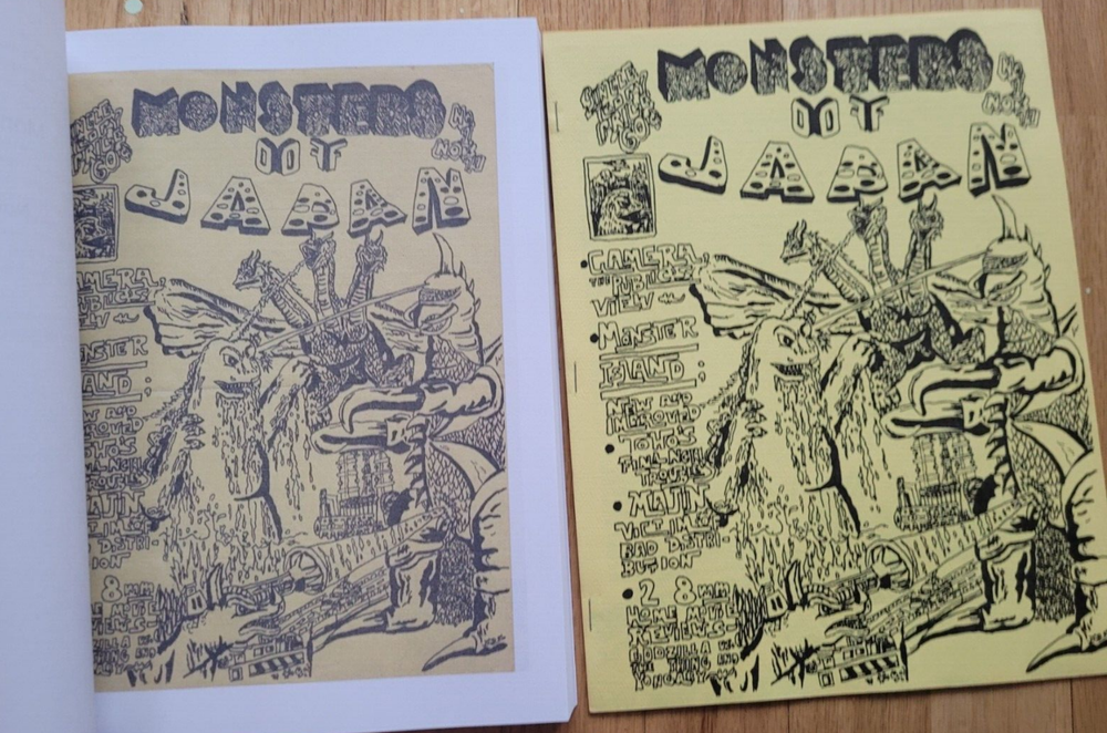 Here is a new compilation published and archived by Brad Boyle collecting several Japanese sci-fi and fantasy fanzines from the late 1970s. One volume of a monumental collection of kaiju and monster self-published fanzines, this collection assembles homespun 'zines that were printed in very low numbers. It's inspiring to see the enthusiasm represented in early kaiju fandom, even if the grammar isn't always perfect and the information, often second or third-hand, is not always accurate. I should know as also included in this lot is issue #1 of my Monsters of Japan, a fledgling effort published when I was 12 years old. It is an original copy from 1977, so if the information contained within is not always scintillating it is an authentic if marginal contribution to the kaiju kraze of the 1970s!
