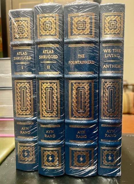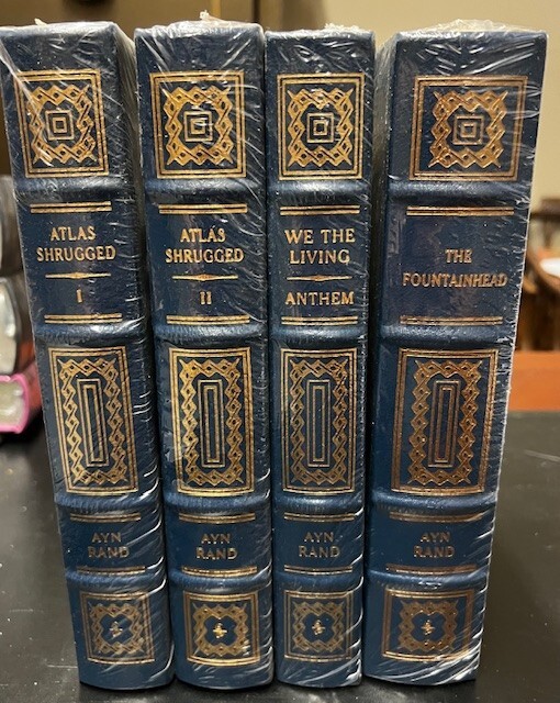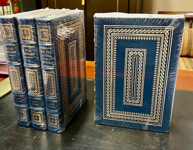 New, Sealed! Easton Press Ayn Rand set, 4 books, 3 volumes. -Atlas Shrugged (in 2 volumes) -The Fountainhead -We The Living