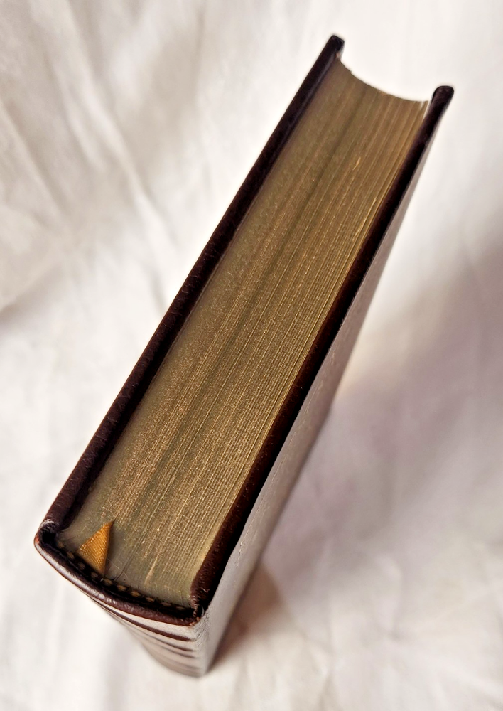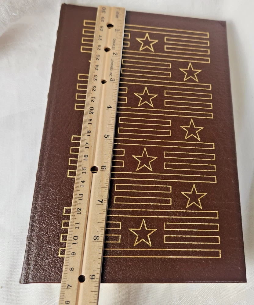 This is a beautiful collector's edition bound in genuine leather. There is a previous owner's name label in the top right corner of the free end paper. There is also an ex libris plate from Easton press on the inside front cover. The pages are clean and unmarked; gold gilt wraps the pages ends and features a silk place holder ribbon. Sold As Is See All Photos Shipped Via Media Mail Book Stand Not Included Packages shipped with Extra Care