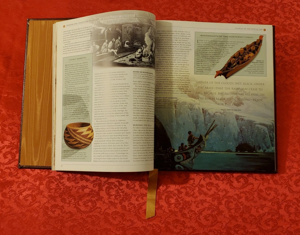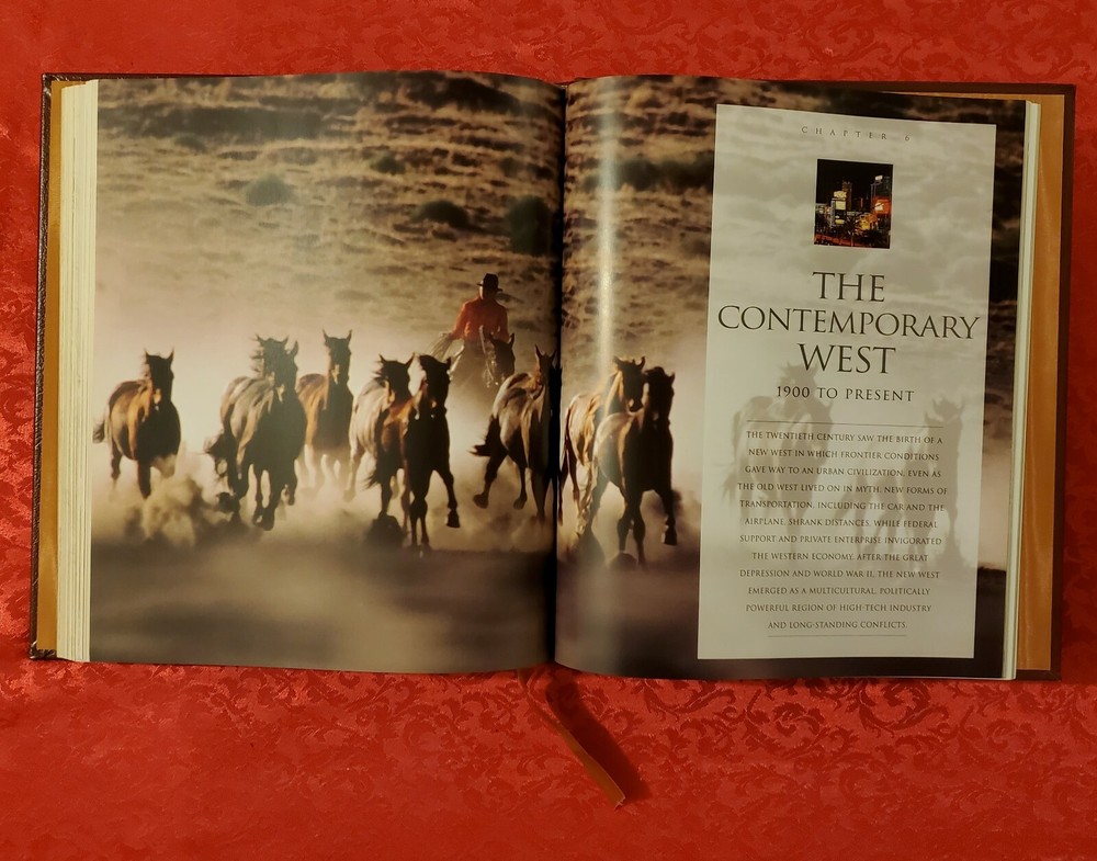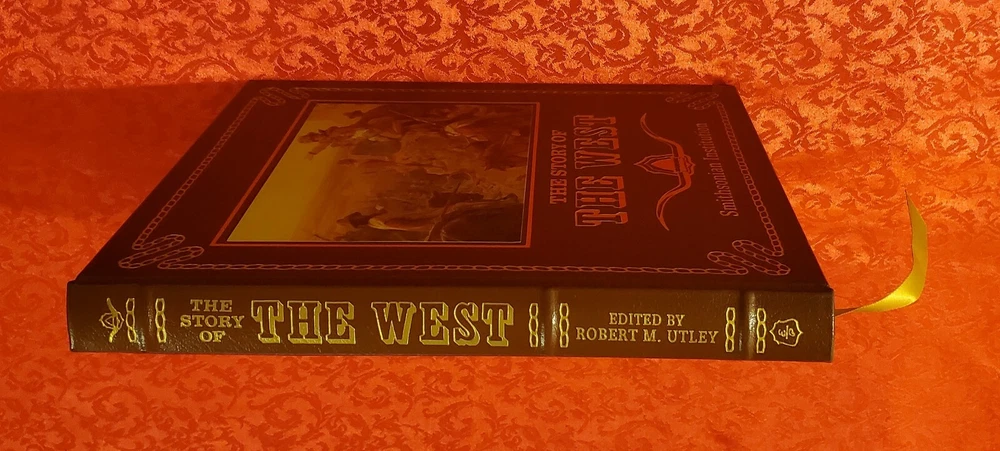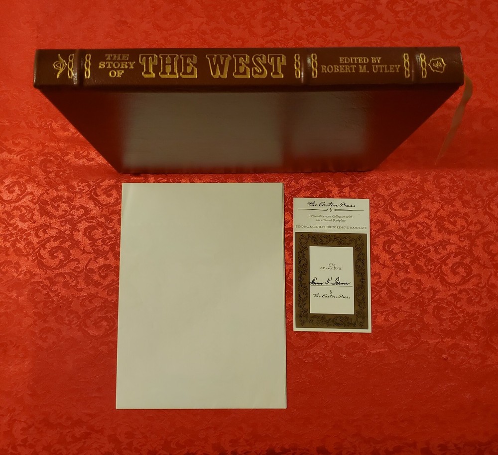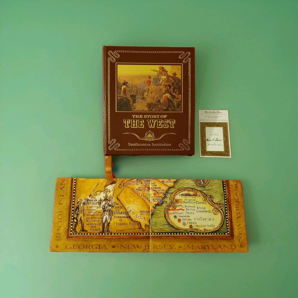 Easton Press The Story Of the West Smithsonian Institution with A Large Color MAP, Leather HARDBACK Book. CRISP Clean Pages. COLOR Image on Front Cover. Leather HARDBACK Book. Pampered Pre-Owned, In Very Very Nice Condition. Approximate Measurements are 11 15/16 " x 10 1/8 ". COLLECTOR'S EDITION Easton Press books are the gold standard in the publishing industry, highly collectible and lasting generations. Easton Press Full Genuine Leather Dubbed Spine Accented Wit 22 kt. Real Gold Satin Ribbon Page Marker Distinctive Cover Design Gilded Page Edges To Protect Against Humidity High Quality Acid - Free paper Smyth-Sewn Pages Silk-Moire Endleaves See photos for details as they are part of the description. Shipped with USPS Media Mail.