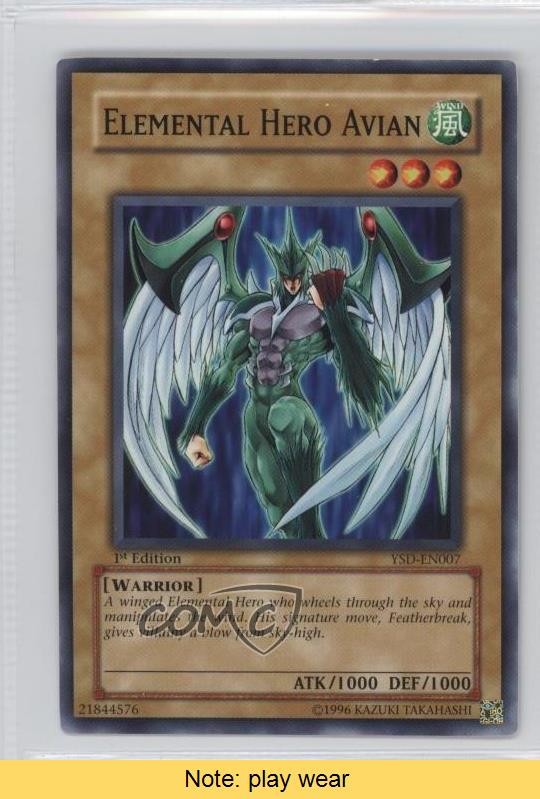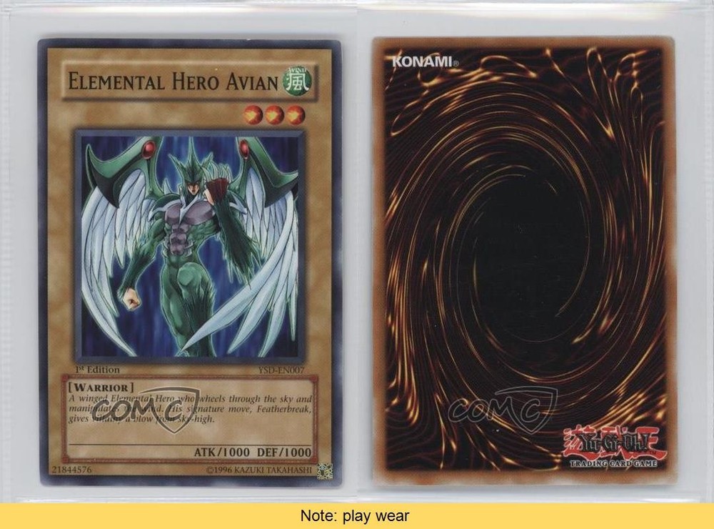 2006 Yu-Gi-Oh! - Starter Deck [Base] - 1st Edition #YSD-EN007 Elemental HERO Avian COMC Item: 37222859 CONDITION NOTE: play wear - YuGiOh Card - Featuring Elemental HERO Avian Search for more: 2006 Yu-Gi-Oh! Search for more: 2006 Yu-Gi-Oh! - Starter Deck [Base] - 1st Edition View all of our Listings Auctions Buy It Now About Us Located in the beautiful Pacific Northwest, COMC (Check Out My Cards) is the world's largest consignment service for trading card singles. More than 10,000 people have used our consignment service to list over 50 million trading cards. Find out how we can help you consign your items on eBay by contacting us through eBay messaging. COMC -- "The Safe & Easy Way to Buy & Sell" Raw Condition for Modern Cards Unless otherwise noted, raw modern cards are listed in Near Mint-Mint condition or better. A NM-MT card appears to be Mint at first glance, but upon closer inspection, may exhibit some of the following: minor print defects (e.g. roller marks, print line, dimple), minor scratches, slight edge wear, and slight corner wear. Centering is clearly visible in the images provided and does not factor into our condition assessment. Raw Condition for Vintage Cards Unless otherwise noted, raw vintage cards are listed in Excellent condition or better. An EX card may exhibit some of the following: minor rounding of corners, surface wear, print defects, light scratches, and slight edge wear/chipping. Centering is clearly visible in the images provided and does not factor into our condition assessment. Domestic Shipping Combined shipping for multiple items is available. To receive combined shipping, please ensure all desired items are in your eBay shopping cart before proceeding to checkout. eBay limits orders to 40 items per order. We automatically combine multiple orders placed on the same day. If you place multiple orders on the same day, please contact us to request a refund of applicable shipping costs. Signature confirmation may be required on invoices over $400. All cards are protected and shipped securely. International Shipping COMC offers eBay's International Shipping (EIS) for international orders under $2,500* (see country exceptions below). All duties and import fees are paid at checkout; in the rare event that there are additional import fees upon delivery, these are borne by the buyer. EIS packages route through a shipping hub in Erlanger, KY before shipping to their final destination. Please note that EIS does not allow for combined shipments. The shipping rates are determined by eBay and cannot be adjusted. *Maximum sale price exceptions: Colombia, Kuwait ($2,000); Taiwan ($1,539); Chile, Costa Rica, Guatemala, Honduras, Trinidad and Tobago ($1,000); Antigua and Barbuda, Aruba, Belize, Dominica, Grenada, Philippines, Saint Kitts and Nevis, Saint Lucia, Montserrat, Turks and Caicos Islands ($500); Dominican Republic, El Salvador ($200). Please request a shipping quote through eBay messaging for orders that exceed the maximum sale price supported by eBay's International Shipping. You will be responsible for all duties and import fees for international orders shipped outside the EIS. All cards are protected and shipped securely. Payment COMC does not accept offers on our cards through our eBay storefront. COMC utilizes eBay’s managed payments system. If you are experiencing difficulties making a payment, please contact eBay for assistance. Return Policy Returns are only accepted on the rare occasion the item is not as described. If you are making a return, please initiate the return process through eBay so a mailing label can be provided for you. Prior to listing, our expert team carefully assessed this item to represent it accurately. Please review the description and high-definition images prior to purchasing to ensure this item meets your satisfaction. We welcome you to contact us if you have further questions about this item. Trust and Integrity COMC carefully assesses each item consigned to us to prevent fraudulent items from entering the marketplace. If you believe an item offered on COMC may be fraudulent, please contact us with details so we can investigate the issue. Items we determine are outside our supported items policy may be removed. Last Modified: 6/3/2025 8:39:33 AM PDT