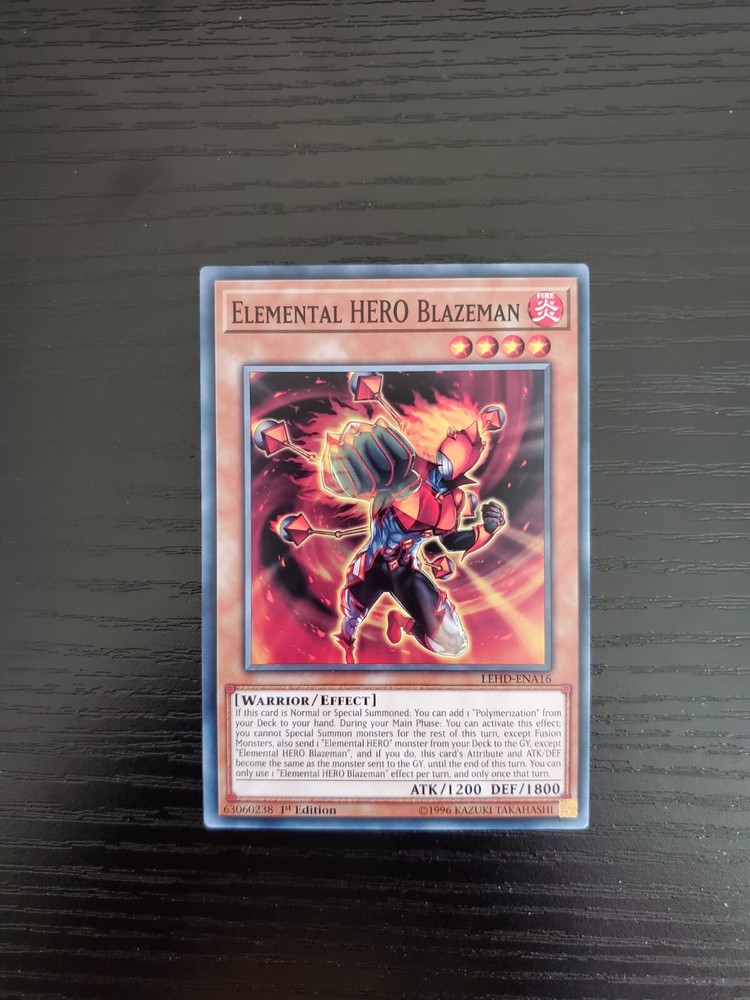 Yu-Gi-Oh! - Legendary Hero Decks 1st Edition - Elemental HERO Blazeman - LEHD-ENA16 Condition: NM - MINT (I have provided clear pictures of the front and back of the card for the bidder to assess the card) Shipping: The card will be carefully placed in penny sleeve, within an Ultra Pro top loader, sealed in a team bag and shipped FOR FREE via USPS within 48 business hours of payment. Check out my eBay store for more great cards. I list new cards nearly every day.