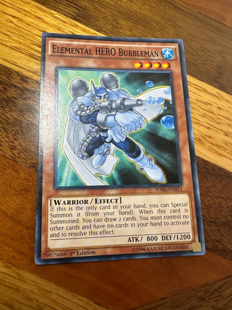 Hello! You are buying one Elemental HERO Bubbleman SDHS-EN012 1st Edition Common in played c ondition! Reason for played condition is general play/edge/scratchwear. See photos for details! As a thank you for buying from me, I will throw in two free Yugioh commons! Thank you so much for looking, have a great day! If there is ever an issue, please let me know so I can do whatever I can to resolve it! Please check out my other items! I have many more single cards!