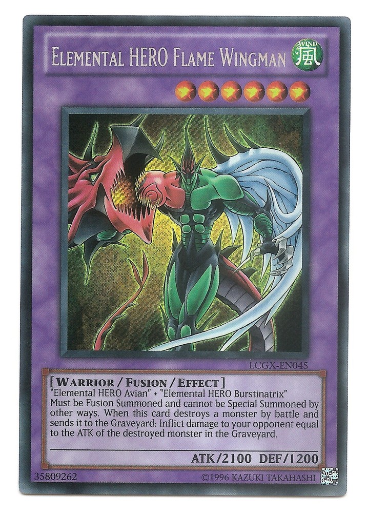 This is the Secret Rare Wind Warrior Fusion Elemental HERO Flame Wingman LCGX-EN045 Unlimited Edition English Mint/NMint Condition Totally Original Konami (or your money back!) I will deliver in safe packaging to keep it in perfect condition. Ideal for players and collectors alike. Check out my other items! I will combine postage costs for multiple purchases. Sign up for my email newsletters by adding my eBay Shop to your favourites