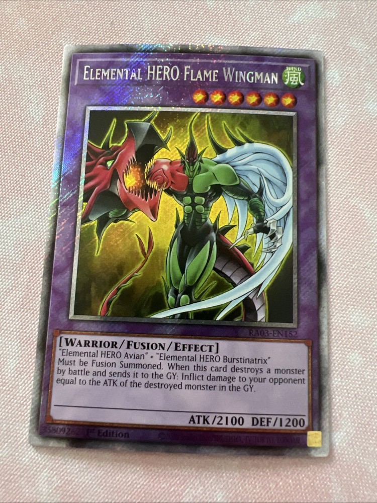 The Elemental HERO Flame Wingman Platinum Secret Rare card is a highly sought-after collectible in the Yu-Gi-Oh! TCG world. This Japanese-sized card features the character Jaden Yuki and belongs to the Quarter Century Bonanza set. With a high defense of 1200 and attack power of 2100, this Super Rare card is a valuable addition to any collection. Manufactured by Konami in 2024, this 1st Edition card is made of sturdy card stock with a foil finish, making it a standout piece for fans of the Yu-Gi-Oh franchise.
