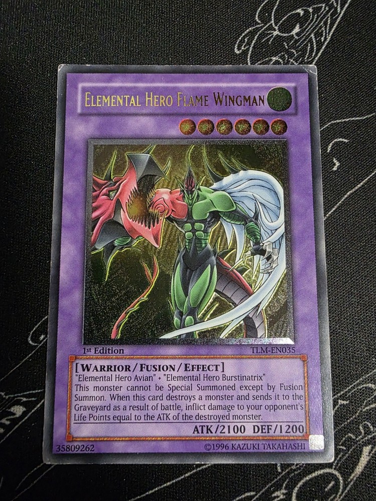 Elemental HERO Flame Wingman (UTR) TLM-EN035 Lost Millennium 1st Edition-VLP-EX The front is in excellent condition- micro surface wear The back is in excellent condition- very light hair scratches...