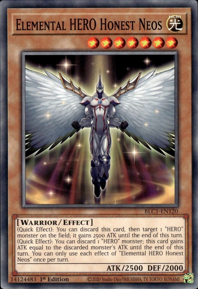 Bluefires Stuff daniel8769-2008 has 99.1% Positive Feedback Welcome! At my store, you will find collectibles and refurbished tech. From recycled memory chips and processors to a variety of storage drives and rebuilt desktops and laptops. I try to keep a variety of products available for everyone. From a single Yu-Gi-Oh! card to a full themed structure Elemental HERO Honest Neos BLC1-EN120 . Condition is "New". Shipped with USPS First Class. Item Description Buyers Note: Near Mint ! A great card for any collector or player. This card is in Near Mint or better. Stock Photo Used Card Name: Elemental HERO Honest Neos BLC1-EN120 - 1st Edition Set: BLC1 - Battles of Legend: Chapter 1 Quantity: 1 Edition: 1st Rarity: Common Condition: NM Payment Information & Terms of Sale Credit Cards: We accept Visa, MasterCard, American Express, and Discover Card through PayPal. Payments are due within 3 days of purchase date! Sorry, no exceptions! Orders are shipped within 24 hours of payment. Orders placed & paid after 12noon PST on Fridays, weekends (Saturdays & Sundays), and Holidays are shipped the following business day. Cards shipped First Class Mail are in a hard plastic top loader with a Waterproof/Tear resistant Bubble Envelope w/Delivery Confirmation, NO INSURANCE! I RECOMEND THIS FOR DELIVERIES OUTSIDE THE CONTENINTAL USA. Continental USA & select countries (Canada, Europe, Australia) Residents of Puerto Rico can only use this service. Cards shipped eBay Standard Envelope for Trading Cards up to $20 are mailed in a standard letter envelope with a hard plastic top loader w/Delivery Confirmation. Delivery can take up to 3 to 5 business days . Continental USA & select countries (Canada, Europe, Australia) THIS SERVICE IS NOT AVAILABLE TO ADDRESSES TO PUERTO RICO. Cards shipped with free shipping are mailed in a standard letter envelope with a hard plastic top loader w/Delivery Confirmation. Delivery can take up to 3 to 5 business days . Continental USA & select countries (Canada, Europe, Australia) This service is excluded for Puerto Rico . I ship Worldwide! I am not responsible for any International customs, taxes, fees, etc. It’s the buyer’s full responsibility. Give up to 30 days time for deliveries outside the Continental U.S. I have no control over administration issues of services provided by other countries and their governments. Once product leaves the U.S please be patient if delivery is delayed. Condition Guide: I do not sell any cards that are in MINT condition, the best condition that we offer is near mint. Near Mint (NM) - Cards in Near Mint condition show minimal to no wear from shuffling, play or handling and can have a nearly unmarked surface, crisp corners and unblemished edges outside of a few minimal flaws. A Near Mint card may have a tiny edge nick or a tiny scratch or two, but overall look nearly un-played with no major defects or flaws. Lightly Played (LP) - Cards in Lightly Played condition may have minor border or corner wear or even just slight scuffs or scratches. There are no major defects such as water damage, bends or issues with the structural integrity of the card. Noticeable imperfections are okay, but none should be too severe or at too high a volume. Moderately Played (MP) - Cards in Moderately Played condition exhibit condition issues visible at a casual glance. Cards in Moderately Played condition can have border wear, corner wear, scratching or scuffing, creases or whitening, minor dirt buildup or any combination of mild examples of these marks. A Moderately Played card may have some form of a more major marking, such as spot water damage or creasing that doesnʼt affect card integrity, but not in combination with other issues such as scratches, scuffs or border/edge wear and not impacting a large area of the card. Heavily Played (HP) - Cards in Heavily Played condition show a severe amount of wear. Heavily Played condition can include cards that have major creasing, major whitening, major border wear or any combination of those flaws. (These flaws cannot prevent the card from being tournament playable when sleeved.) Damaged - Cards in Damaged condition can exhibit a tear, bend or crease that may make the card illegal for tournament play, even in a sleeve. Cards in Damaged condition may have extreme border wear, extreme corner wear, heavy scratching or scuffing, folds, creases or tears or other damages that impacts the structural integrity of the card