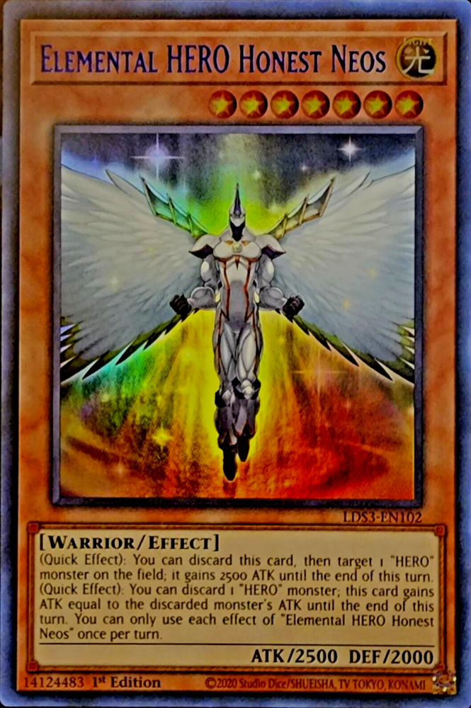 Bluefires Stuff daniel8769-2008 has 99.1% Positive Feedback Welcome! At my store, you will find collectibles and refurbished tech. From recycled memory chips and processors to a variety of storage drives and rebuilt desktops and laptops. I try to keep a variety of products available for everyone. From a single Yu-Gi-Oh! card to a full themed structure Elemental HERO Honest Neos LDS3-EN102 . Condition is "New". Shipped with USPS First Class. Item Description Buyers Note: Near Mint ! A great card for any collector or player. This card is in Near Mint or better. Card Name: Elemental HERO Honest Neos LDS3-EN102 - 1st Edition Set: LDS3 - Legendary Duelists: Season 3 Quantity: 1 Edition: 1st Rarity: Blue Ultra Rare Condition: NM Payment Information & Terms of Sale Credit Cards: We accept Visa, MasterCard, American Express, and Discover Card through PayPal. Payments are due within 3 days of purchase date! Sorry, no exceptions! Orders are shipped within 24 hours of payment. Orders placed & paid after 12noon PST on Fridays, weekends (Saturdays & Sundays), and Holidays are shipped the following business day. Cards shipped First Class Mail are in a hard plastic top loader with a Waterproof/Tear resistant Bubble Envelope w/Delivery Confirmation, NO INSURANCE! I RECOMEND THIS FOR DELIVERIES OUTSIDE THE CONTENINTAL USA. Continental USA & select countries (Canada, Europe, Australia) Residents of Puerto Rico can only use this service. Cards shipped eBay Standard Envelope for Trading Cards up to $20 are mailed in a standard letter envelope with a hard plastic top loader w/Delivery Confirmation. Delivery can take up to 3 to 5 business days . Continental USA & select countries (Canada, Europe, Australia) THIS SERVICE IS NOT AVAILABLE TO ADDRESSES TO PUERTO RICO. Cards shipped with free shipping are mailed in a standard letter envelope with a hard plastic top loader w/Delivery Confirmation. Delivery can take up to 3 to 5 business days . Continental USA & select countries (Canada, Europe, Australia) This service is excluded for Puerto Rico . I ship Worldwide! I am not responsible for any International customs, taxes, fees, etc. It’s the buyer’s full responsibility. Give up to 30 days time for deliveries outside the Continental U.S. I have no control over administration issues of services provided by other countries and their governments. Once product leaves the U.S please be patient if delivery is delayed. Condition Guide: I do not sell any cards that are in MINT condition, the best condition that we offer is near mint. Near Mint (NM) - Cards in Near Mint condition show minimal to no wear from shuffling, play or handling and can have a nearly unmarked surface, crisp corners and unblemished edges outside of a few minimal flaws. A Near Mint card may have a tiny edge nick or a tiny scratch or two, but overall look nearly un-played with no major defects or flaws. Lightly Played (LP) - Cards in Lightly Played condition may have minor border or corner wear or even just slight scuffs or scratches. There are no major defects such as water damage, bends or issues with the structural integrity of the card. Noticeable imperfections are okay, but none should be too severe or at too high a volume. Moderately Played (MP) - Cards in Moderately Played condition exhibit condition issues visible at a casual glance. Cards in Moderately Played condition can have border wear, corner wear, scratching or scuffing, creases or whitening, minor dirt buildup or any combination of mild examples of these marks. A Moderately Played card may have some form of a more major marking, such as spot water damage or creasing that doesnʼt affect card integrity, but not in combination with other issues such as scratches, scuffs or border/edge wear and not impacting a large area of the card. Heavily Played (HP) - Cards in Heavily Played condition show a severe amount of wear. Heavily Played condition can include cards that have major creasing, major whitening, major border wear or any combination of those flaws. (These flaws cannot prevent the card from being tournament playable when sleeved.) Damaged - Cards in Damaged condition can exhibit a tear, bend or crease that may make the card illegal for tournament play, even in a sleeve. Cards in Damaged condition may have extreme border wear, extreme corner wear, heavy scratching or scuffing, folds, creases or tears or other damages that impacts the structural integrity of the card.