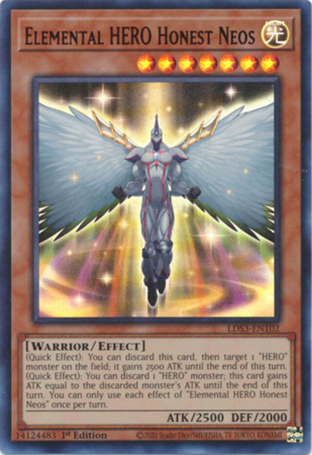 Please, carefully read the following: Image shown is a stock photo and does not reflect the actual card you will be receiving. Please refer to the condition guide below, the title and item description for what you will be receiving. Please also be aware that due to plastic shortages, orders may not always come in a plastic toploader but will always be protected as much as possible to prevent damage. You will receive 1x Elemental HERO Honest Neos (Red) - LDS3-EN102 - Ultra Rare - 1st Edition - Condition: Near Mint Please refer to the Title and Item Description above for the item being purchased. Delivery delays: Deliveries may not always fall within the estimated delivery dates when shipping outside of Canada and USA. Many factors may contribute to delays in delivering the package such as weather and customs. Please note that delivery to international locations may take up to 8 weeks to arrive . We always ship out orders within 1 business day and after dropping off with the post office, delivery times are out of our control. Feedback: We will always leave positive feedback for you and we ask if you can do the same for us. If there is any reason why the transaction was not up to your expectations, please message us before leaving feedback so we can address the issue. Combined shipping: To receive a combined shipping quote, please make sure that you commit to purchasing on ebay.ca . This allows us to send you a combined shipping invoice before payment. Shipping within the USA (6-10 Business days): FREE! Shipping within Canada (3-8 Business days): FREE! Shipping and handling delay: We aim to ship all orders within 1 business day. We do not ship on weekends and holidays. Condition Guide: We do not sell any cards that are in MINT condition, the best condition that we offer is near mint. Near Mint (NM) - Cards in Near Mint condition show minimal to no wear from shuffling, play or handling and can have a nearly unmarked surface, crisp corners and unblemished edges outside of a few minimal flaws. A Near Mint card may have a tiny edge nick or a tiny scratch or two, but overall look nearly unplayed with no major defects or flaws. Lightly Played (LP) - Cards in Lightly Played condition may have minor border or corner wear or even just slight scuffs or scratches. There are no major defects such as water damage, bends or issues with the structural integrity of the card. Noticeable imperfections are okay, but none should be too severe or at too high a volume. Moderately Played (MP) - Cards in Moderately Played condition exhibit condition issues visible at a casual glance. Cards in Moderately Played condition can have border wear, corner wear, scratching or scuffing, creases or whitening, minor dirt buildup or any combination of mild examples of these marks. A Moderately Played card may have some form of a more major marking, such as spot water damage or creasing that doesnʼt affect card integrity, but not in combination with other issues such as scratches, scuffs or border/edge wear and not impacting a large area of the card. Heavily Played (HP) - Cards in Heavily Played condition show a severe amount of wear. Heavily Played condition can include cards that have major creasing, major whitening, major border wear or any combination of those flaws. (These flaws cannot prevent the card from being tournament playable when sleeved.) Damaged - Cards in Damaged condition can exhibit a tear, bend or crease that may make the card illegal for tournament play, even in a sleeve. Cards in Damaged condition may have extreme border wear, extreme corner wear, heavy scratching or scuffing, folds, creases or tears or other damages that impacts the structural integrity of the card.