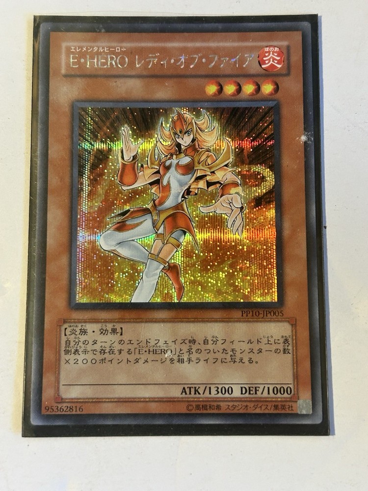 Dive into the world of strategic duels with the "Elemental HERO Lady Heat" card, a Secret Rare gem from the Yu-Gi-Oh! Trading Card Game. This Japanese edition monster card, numbered PP10-JP005, features a striking foil finish that's sure to catch the eye of collectors and players alike. Crafted with quality paper material by Konami, this card is a must-have for any serious Yu-Gi-Oh! enthusiast. As a part of the renowned "Elemental HERO" series, "Lady Heat" brings a blend of nostalgia and power to the table. Her addition to your deck can turn the tides in your favor, giving you an edge in battle. Whether for play or display, this card's rarity and the prestige of owning a piece of the Yu-Gi-Oh! legacy make it a valuable addition to any collection.