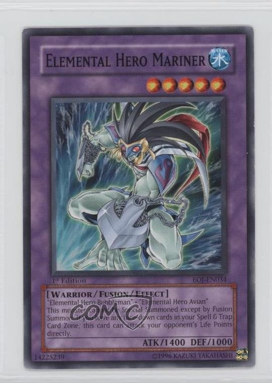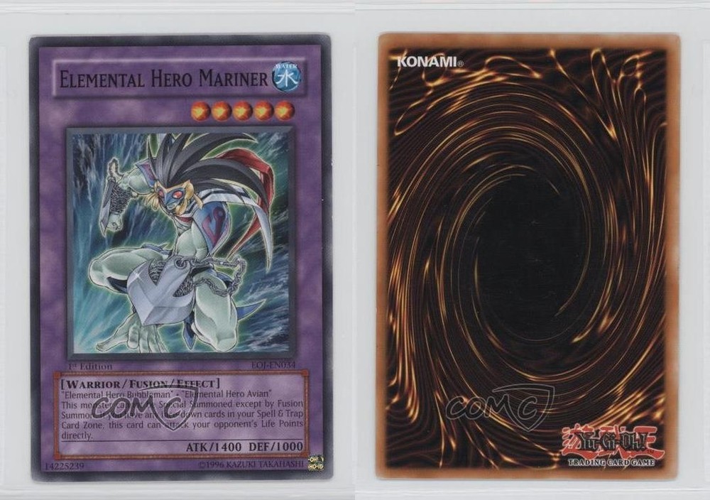 2006 Yu-Gi-Oh! - Enemy of Justice - [Base] - 1st Edition #EOJ-EN034 Elemental HERO Mariner COMC Item: 29615071 - YuGiOh Card - Featuring Elemental HERO Mariner Search for more: 2006 Yu-Gi-Oh! - Enemy of Justice Search for more: 2006 Yu-Gi-Oh! - Enemy of Justice - [Base] - 1st Edition View all of our Listings Auctions Buy It Now About Us Located in the beautiful Pacific Northwest, COMC (Check Out My Cards) is the world's largest consignment service for trading card singles. More than 10,000 people have used our consignment service to list over 50 million trading cards. Find out how we can help you consign your items on eBay by contacting us through eBay messaging. COMC -- "The Safe & Easy Way to Buy & Sell" Raw Condition for Modern Cards Unless otherwise noted, raw modern cards are listed in Near Mint-Mint condition or better. A NM-MT card appears to be Mint at first glance, but upon closer inspection, may exhibit some of the following: minor print defects (e.g. roller marks, print line, dimple), minor scratches, slight edge wear, and slight corner wear. Centering is clearly visible in the images provided and does not factor into our condition assessment. Raw Condition for Vintage Cards Unless otherwise noted, raw vintage cards are listed in Excellent condition or better. An EX card may exhibit some of the following: minor rounding of corners, surface wear, print defects, light scratches, and slight edge wear/chipping. Centering is clearly visible in the images provided and does not factor into our condition assessment. Domestic Shipping Combined shipping for multiple items is available. To receive combined shipping, please ensure all desired items are in your eBay shopping cart before proceeding to checkout. eBay limits orders to 40 items per order. We automatically combine multiple orders placed on the same day. If you place multiple orders on the same day, please contact us to request a refund of applicable shipping costs. Signature confirmation may be required on invoices over $400. All cards are protected and shipped securely. International Shipping COMC offers eBay's International Shipping (EIS) for international orders under $2,500* (see country exceptions below). All duties and import fees are paid at checkout; in the rare event that there are additional import fees upon delivery, these are borne by the buyer. EIS packages route through a shipping hub in Erlanger, KY before shipping to their final destination. Please note that EIS does not allow for combined shipments. The shipping rates are determined by eBay and cannot be adjusted. *Maximum sale price exceptions: Colombia, Kuwait ($2,000); Taiwan ($1,539); Chile, Costa Rica, Guatemala, Honduras, Trinidad and Tobago ($1,000); Antigua and Barbuda, Aruba, Belize, Dominica, Grenada, Philippines, Saint Kitts and Nevis, Saint Lucia, Montserrat, Turks and Caicos Islands ($500); Dominican Republic, El Salvador ($200). Please request a shipping quote through eBay messaging for orders that exceed the maximum sale price supported by eBay's International Shipping. You will be responsible for all duties and import fees for international orders shipped outside the EIS. All cards are protected and shipped securely. Payment COMC does not accept offers on our cards through our eBay storefront. COMC utilizes eBay’s managed payments system. If you are experiencing difficulties making a payment, please contact eBay for assistance. Return Policy Returns are only accepted on the rare occasion the item is not as described. If you are making a return, please initiate the return process through eBay so a mailing label can be provided for you. Prior to listing, our expert team carefully assessed this item to represent it accurately. Please review the description and high-definition images prior to purchasing to ensure this item meets your satisfaction. We welcome you to contact us if you have further questions about this item. Trust and Integrity COMC carefully assesses each item consigned to us to prevent fraudulent items from entering the marketplace. If you believe an item offered on COMC may be fraudulent, please contact us with details so we can investigate the issue. Items we determine are outside our supported items policy may be removed. Last Modified: 5/31/2025 11:23:48 PM PDT