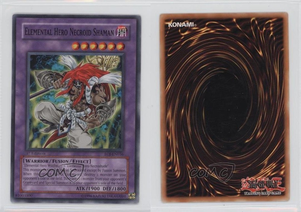 2006 Yu-Gi-Oh! - Enemy of Justice - [Base] - 1st Edition #EOJ-EN036 Elemental HERO Necroid Shaman COMC Item: 29615069 - YuGiOh Card - Featuring Elemental HERO Necroid Shaman Search for more: 2006 Yu-Gi-Oh! - Enemy of Justice Search for more: 2006 Yu-Gi-Oh! - Enemy of Justice - [Base] - 1st Edition View all of our Listings Auctions Buy It Now About Us Located in the beautiful Pacific Northwest, COMC (Check Out My Cards) is the world's largest consignment service for trading card singles. More than 10,000 people have used our consignment service to list over 50 million trading cards. Find out how we can help you consign your items on eBay by contacting us through eBay messaging. COMC -- "The Safe & Easy Way to Buy & Sell" Raw Condition for Modern Cards Unless otherwise noted, raw modern cards are listed in Near Mint-Mint condition or better. A NM-MT card appears to be Mint at first glance, but upon closer inspection, may exhibit some of the following: minor print defects (e.g. roller marks, print line, dimple), minor scratches, slight edge wear, and slight corner wear. Centering is clearly visible in the images provided and does not factor into our condition assessment. Raw Condition for Vintage Cards Unless otherwise noted, raw vintage cards are listed in Excellent condition or better. An EX card may exhibit some of the following: minor rounding of corners, surface wear, print defects, light scratches, and slight edge wear/chipping. Centering is clearly visible in the images provided and does not factor into our condition assessment. Domestic Shipping Combined shipping for multiple items is available. To receive combined shipping, please ensure all desired items are in your eBay shopping cart before proceeding to checkout. eBay limits orders to 40 items per order. We automatically combine multiple orders placed on the same day. If you place multiple orders on the same day, please contact us to request a refund of applicable shipping costs. Signature confirmation may be required on invoices over $400. All cards are protected and shipped securely. International Shipping COMC offers eBay's International Shipping (EIS) for international orders under $2,500* (see country exceptions below). All duties and import fees are paid at checkout; in the rare event that there are additional import fees upon delivery, these are borne by the buyer. EIS packages route through a shipping hub in Erlanger, KY before shipping to their final destination. Please note that EIS does not allow for combined shipments. The shipping rates are determined by eBay and cannot be adjusted. *Maximum sale price exceptions: Colombia, Kuwait ($2,000); Taiwan ($1,539); Chile, Costa Rica, Guatemala, Honduras, Trinidad and Tobago ($1,000); Antigua and Barbuda, Aruba, Belize, Dominica, Grenada, Philippines, Saint Kitts and Nevis, Saint Lucia, Montserrat, Turks and Caicos Islands ($500); Dominican Republic, El Salvador ($200). Please request a shipping quote through eBay messaging for orders that exceed the maximum sale price supported by eBay's International Shipping. You will be responsible for all duties and import fees for international orders shipped outside the EIS. All cards are protected and shipped securely. Payment COMC does not accept offers on our cards through our eBay storefront. COMC utilizes eBay’s managed payments system. If you are experiencing difficulties making a payment, please contact eBay for assistance. Return Policy Returns are only accepted on the rare occasion the item is not as described. If you are making a return, please initiate the return process through eBay so a mailing label can be provided for you. Prior to listing, our expert team carefully assessed this item to represent it accurately. Please review the description and high-definition images prior to purchasing to ensure this item meets your satisfaction. We welcome you to contact us if you have further questions about this item. Trust and Integrity COMC carefully assesses each item consigned to us to prevent fraudulent items from entering the marketplace. If you believe an item offered on COMC may be fraudulent, please contact us with details so we can investigate the issue. Items we determine are outside our supported items policy may be removed. Last Modified: 7/19/2025 3:24:40 AM PDT