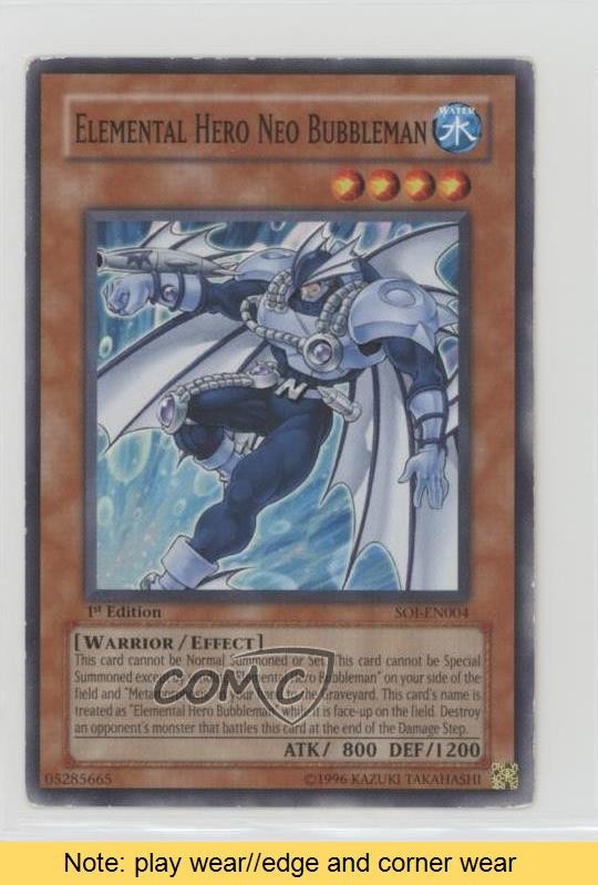 This card is a nostalgic gem for any Yu-Gi-Oh! fan! Despite some play wear, the 1st Edition Neo Bubbleman from Shadow of Infinity still looks great and holds its value. Perfect for collectors who appreciate vintage cards with character. COMC makes buying easy and reliable—highly recommended!