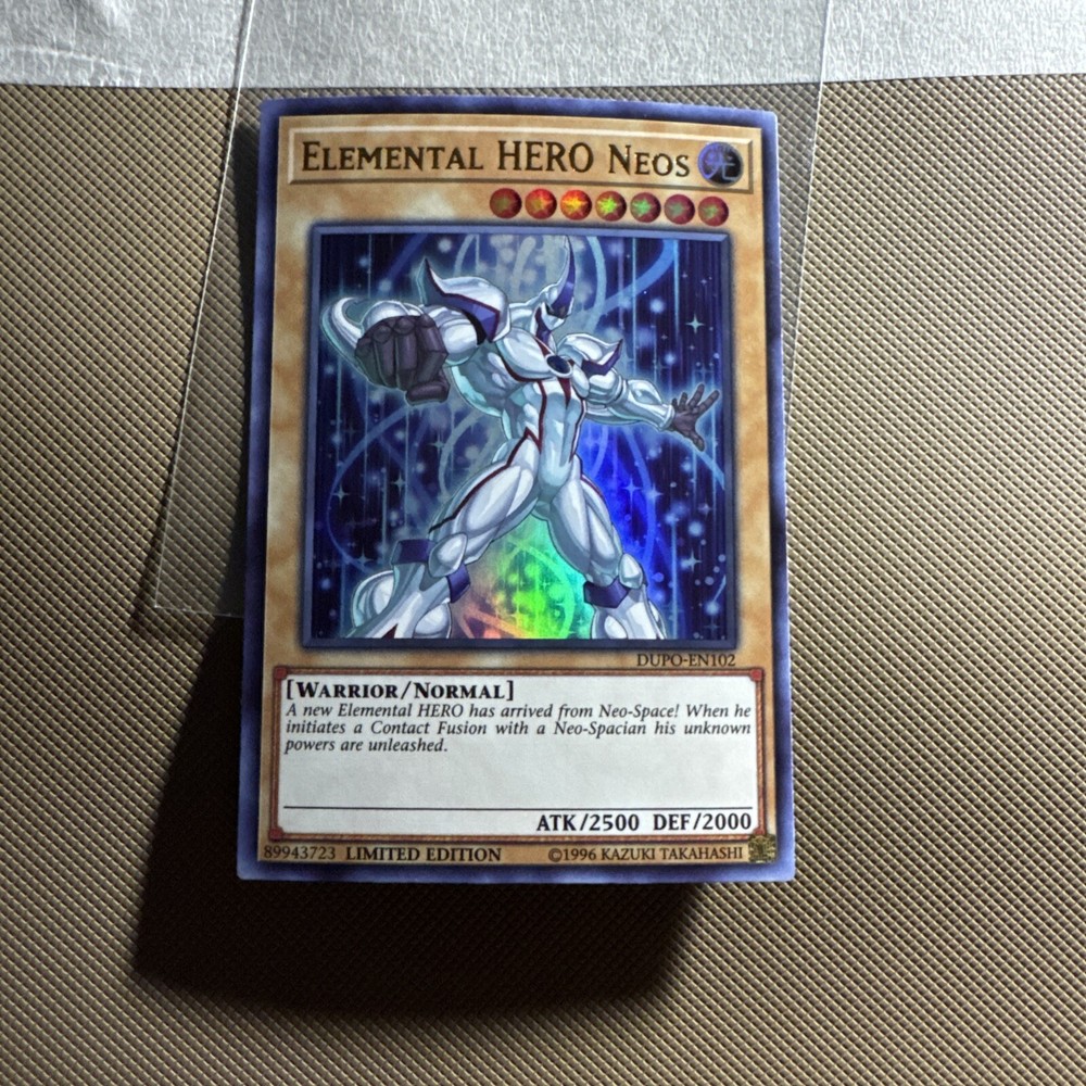Elemental HERO Neos is a limited edition Ultra Rare card from the Duel Power set of the Yu-Gi-Oh! TCG. Featuring characters like Banshee, Yami Yugi, and Seto Kaiba, this Japanese card is a must-have for fans of the game. The card, with Card Number DUPO-EN102, showcases a striking Holo finish and is made of high-quality card stock. Perfect for collectors aged 6 and up, this card is in Near Mint condition and is a valuable addition to any Yu-Gi-Oh! card collection.