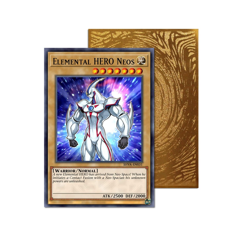 It’s time to DUEL with our custom printed metal orica cards! This design is printed with our exclusive Elemental HERO Neos design. Currently only available in gold metal color. All designs printed in Canada! Free shipping as letter mail to US and Canada. Please note this option does not include a tracking number or shipping insurance. There is an option to upgrade to tracked shipping at checkout. Features: ➡ Awesome vibrant artwork that does not scratch or peel off! ➡ The back is embossed with the same illustration found on the back of a real Yu-Gi-Oh! card. ➡ The thickness is slim and fits in a card sleeve, but the metal will not bend or warp under normal use. ➡ The size is exactly the same as a Yu-Gi-Oh! card.