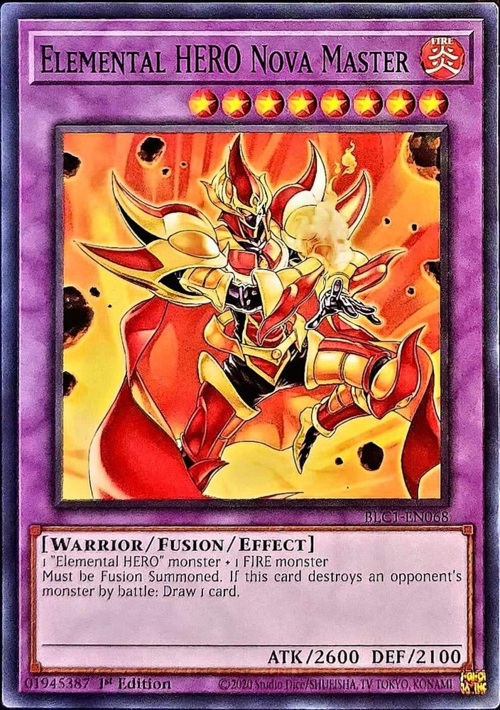 Bluefires Stuff daniel8769-2008 has 99.1% Positive Feedback Welcome! At my store, you will find collectibles and refurbished tech. From recycled memory chips and processors to a variety of storage drives and rebuilt desktops and laptops. I try to keep a variety of products available for everyone. From a single Yu-Gi-Oh! card to a full themed structure Elemental HERO Nova Master BLC1-EN068 . Condition is "New". Shipped with USPS First Class. Item Description Buyers Note: Near Mint ! A great card for any collector or player. This card is in Near Mint or better. Card Name: Elemental HERO Nova Master BLC1-EN068 - 1st Edition Set: BLC1 - Battles of Legend: Chapter 1 Quantity: 1 Edition: 1st Rarity: Common Payment Information & Terms of Sale Credit Cards: We accept Visa, MasterCard, American Express, and Discover Card through PayPal. Payments are due within 3 days of purchase date! Sorry, no exceptions! Orders are shipped within 24 hours of payment. Orders placed & paid after 12noon PST on Fridays, weekends (Saturdays & Sundays), and Holidays are shipped the following business day. Cards shipped First Class Mail are in a hard plastic top loader with a Waterproof/Tear resistant Bubble Envelope w/Delivery Confirmation, NO INSURANCE! I RECOMEND THIS FOR DELIVERIES OUTSIDE THE CONTENINTAL USA. Continental USA & select countries (Canada, Europe, Australia) Residents of Puerto Rico can only use this service. Cards shipped eBay Standard Envelope for Trading Cards up to $20 are mailed in a standard letter envelope with a hard plastic top loader w/Delivery Confirmation. Delivery can take up to 3 to 5 business days . Continental USA & select countries (Canada, Europe, Australia) THIS SERVICE IS NOT AVAILABLE TO ADDRESSES TO PUERTO RICO. Cards shipped with free shipping are mailed in a standard letter envelope with a hard plastic top loader w/Delivery Confirmation. Delivery can take up to 3 to 5 business days . Continental USA & select countries (Canada, Europe, Australia) This service is excluded for Puerto Rico . I ship Worldwide! I am not responsible for any International customs, taxes, fees, etc. It’s the buyer’s full responsibility. Give up to 30 days time for deliveries outside the Continental U.S. I have no control over administration issues of services provided by other countries and their governments. Once product leaves the U.S please be patient if delivery is delayed. Condition Guide: I do not sell any cards that are in MINT condition, the best condition that we offer is near mint. Near Mint (NM) - Cards in Near Mint condition show minimal to no wear from shuffling, play or handling and can have a nearly unmarked surface, crisp corners and unblemished edges outside of a few minimal flaws. A Near Mint card may have a tiny edge nick or a tiny scratch or two, but overall look nearly un-played with no major defects or flaws. Lightly Played (LP) - Cards in Lightly Played condition may have minor border or corner wear or even just slight scuffs or scratches. There are no major defects such as water damage, bends or issues with the structural integrity of the card. Noticeable imperfections are okay, but none should be too severe or at too high a volume. Moderately Played (MP) - Cards in Moderately Played condition exhibit condition issues visible at a casual glance. Cards in Moderately Played condition can have border wear, corner wear, scratching or scuffing, creases or whitening, minor dirt buildup or any combination of mild examples of these marks. A Moderately Played card may have some form of a more major marking, such as spot water damage or creasing that doesnʼt affect card integrity, but not in combination with other issues such as scratches, scuffs or border/edge wear and not impacting a large area of the card. Heavily Played (HP) - Cards in Heavily Played condition show a severe amount of wear. Heavily Played condition can include cards that have major creasing, major whitening, major border wear or any combination of those flaws. (These flaws cannot prevent the card from being tournament playable when sleeved.) Damaged - Cards in Damaged condition can exhibit a tear, bend or crease that may make the card illegal for tournament play, even in a sleeve. Cards in Damaged condition may have extreme border wear, extreme corner wear, heavy scratching or scuffing, folds, creases or tears or other damages that impacts the structural integrity of the card