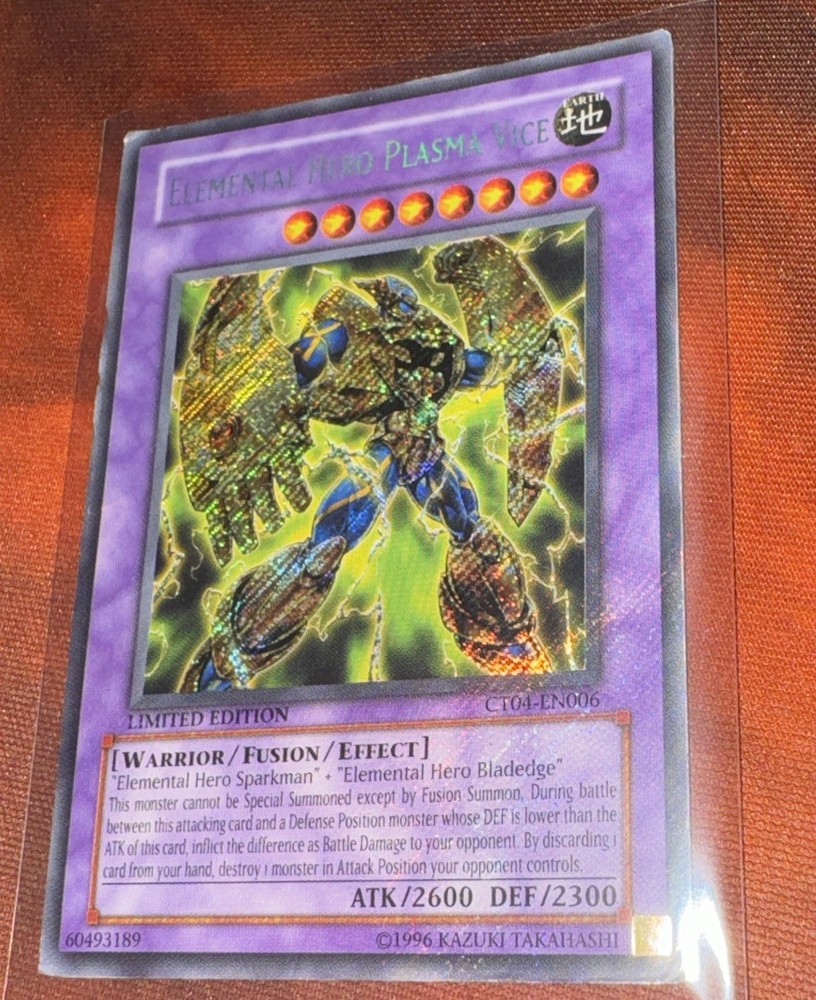 Dive into the strategic depths of Yu-Gi-Oh! TCG with the formidable 'Elemental Hero Plasma Vice' card, a must-have for collectors and duelists alike. From the 2007 Collectors Tin, this Secret Rare card bears the might of a Warrior-type monster with an attack power of 2600 and a defense toughness of 2300, ready to tip the scales in your favor. Card Number CT04-EN006, 'Elemental Hero Plasma Vice' is a blend of Effect and Fusion card types, presented in English and manufactured by Konami. This limited edition piece is a true gem for those who value rarity and the intense thrill of the game. Enhance your deck with the strength of this Earth attribute hero and leave an indelible mark on your opponents.
