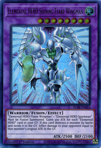 Please, carefully read the following: Image shown is a stock photo and does not reflect the actual card you will be receiving. Please refer to the condition guide below, the title and item description for what you will be receiving. Please also be aware that due to plastic shortages, orders may not always come in a plastic toploader but will always be protected as much as possible to prevent damage. You will receive 1x Elemental HERO Shining Flare Wingman - BLAR-EN054 - Ultra Rare - 1st Edition - Condition: Lightly Played Please refer to the Title and Item Description above for the item being purchased. Delivery delays: Deliveries may not always fall within the estimated delivery dates when shipping outside of Canada and USA. Many factors may contribute to delays in delivering the package such as weather and customs. Please note that delivery to international locations may take up to 8 weeks to arrive . We always ship out orders within 1 business day and after dropping off with the post office, delivery times are out of our control. Feedback: We will always leave positive feedback for you and we ask if you can do the same for us. If there is any reason why the transaction was not up to your expectations, please message us before leaving feedback so we can address the issue. Combined shipping: To receive a combined shipping quote, please make sure that you commit to purchasing on ebay.ca . This allows us to send you a combined shipping invoice before payment. Shipping within the USA (6-10 Business days): FREE! Shipping within Canada (3-8 Business days): FREE! Shipping and handling delay: We aim to ship all orders within 1 business day. We do not ship on weekends and holidays. Condition Guide: We do not sell any cards that are in MINT condition, the best condition that we offer is near mint. Near Mint (NM) - Cards in Near Mint condition show minimal to no wear from shuffling, play or handling and can have a nearly unmarked surface, crisp corners and unblemished edges outside of a few minimal flaws. A Near Mint card may have a tiny edge nick or a tiny scratch or two, but overall look nearly unplayed with no major defects or flaws. Lightly Played (LP) - Cards in Lightly Played condition may have minor border or corner wear or even just slight scuffs or scratches. There are no major defects such as water damage, bends or issues with the structural integrity of the card. Noticeable imperfections are okay, but none should be too severe or at too high a volume. Moderately Played (MP) - Cards in Moderately Played condition exhibit condition issues visible at a casual glance. Cards in Moderately Played condition can have border wear, corner wear, scratching or scuffing, creases or whitening, minor dirt buildup or any combination of mild examples of these marks. A Moderately Played card may have some form of a more major marking, such as spot water damage or creasing that doesnʼt affect card integrity, but not in combination with other issues such as scratches, scuffs or border/edge wear and not impacting a large area of the card. Heavily Played (HP) - Cards in Heavily Played condition show a severe amount of wear. Heavily Played condition can include cards that have major creasing, major whitening, major border wear or any combination of those flaws. (These flaws cannot prevent the card from being tournament playable when sleeved.) Damaged - Cards in Damaged condition can exhibit a tear, bend or crease that may make the card illegal for tournament play, even in a sleeve. Cards in Damaged condition may have extreme border wear, extreme corner wear, heavy scratching or scuffing, folds, creases or tears or other damages that impacts the structural integrity of the card.