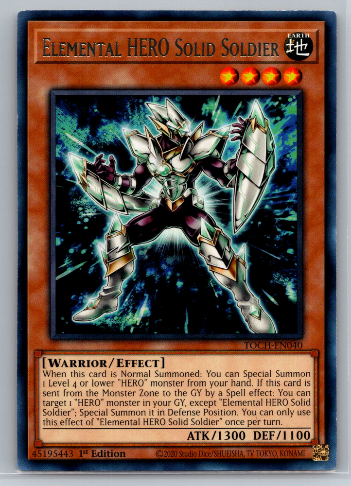 Elemental HERO Solid Soldier Yugioh Toon Chaos Rare TOCH-EN040 1st Edition LP condition, light wear