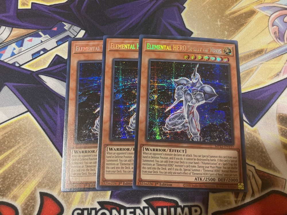 Elemental HERO Spirit of Neos MP23-EN117 1st Prismatic Secret Rare NM Yugioh x3 Elemental HERO Spirit of Neos MP23-EN117 1st x3 Prismatic Secret Rare Cards Cards are in NM Condition Shipped in Top Loader and Sleeve Please Contact me if there is anything wrong with your order or shipping before leaving feedback. Please give me a chance to fix the problem. Thanks! Please pay within 3 days of winning an auction! I will only ship to Canada and the United States Combined shipping, highest shipping price plus $0.50 per each additional item won All orders over $100 will require tracking. Please wait for an invoice before paying in this case. For orders within Canada this will cost $12 and for orders going to the United States this will cost $15 Card Grading Legend M - Mint NM - Near Mint LP - Lightly Played MP - Moderately Played HP- Heavily Played DMG - Damaged _gsrx_vers_1608 (GS 9.5 (1608))