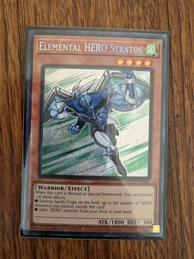 Elemental HERO Stratos is a sought-after Secret Rare card from the Battles of Legend: Chapter 1 set in the Yu-Gi-Oh! TCG. This Limited Edition card is a must-have for collectors and fans of the Yu-Gi-Oh! franchise. Manufactured by Konami, this powerful Elemental HERO card is sure to enhance any CCG collection.