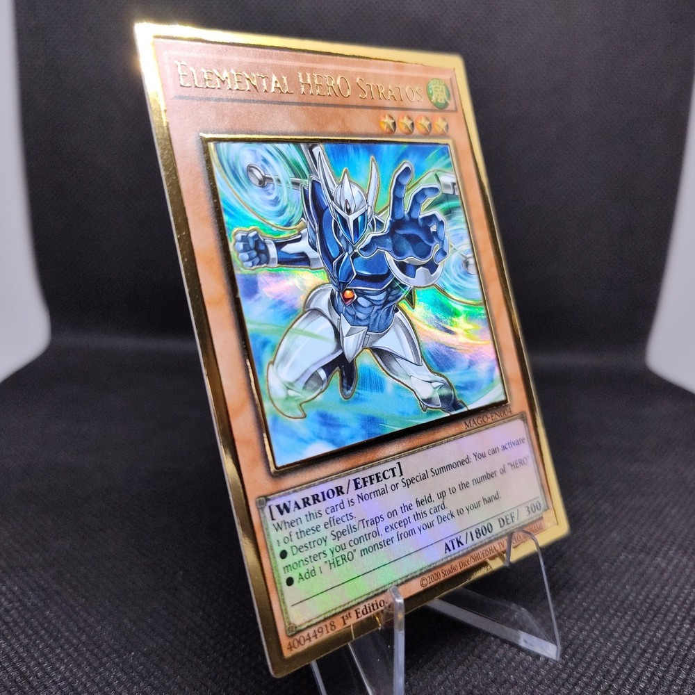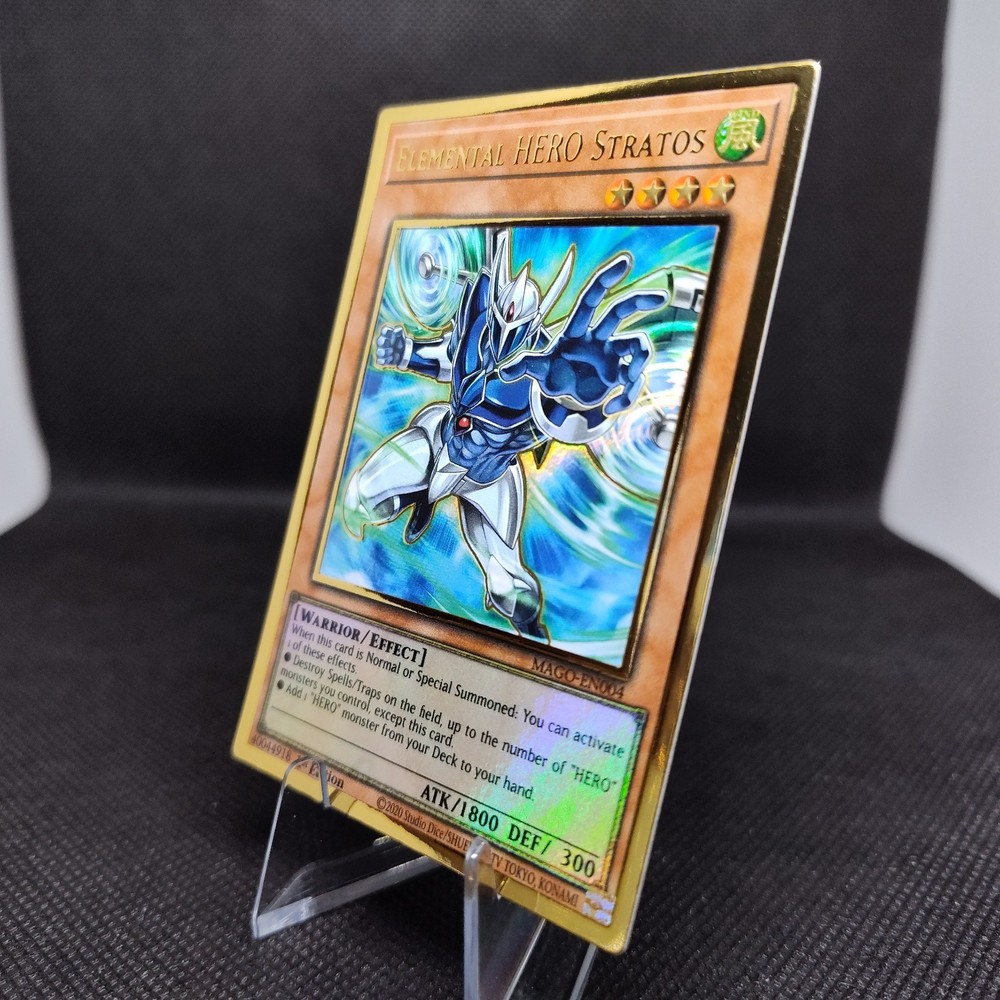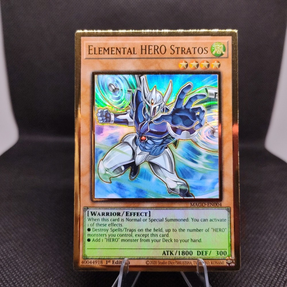 Add an exceptional card to your collection with this pristine "Elemental HERO Stratos" card (MAGO-EN004) from the 1st Edition Yu-Gi-Oh! series! This Level 4 Warrior/Effect card features an impressive 1800 ATK and versatile abilities, allowing it to destroy spells/traps or fetch a "HERO" monster from your deck. In **mint condition**, this card has never been played and will be packaged with the utmost care to ensure safe delivery. Don't miss the chance to own this iconic piece in flawless form!