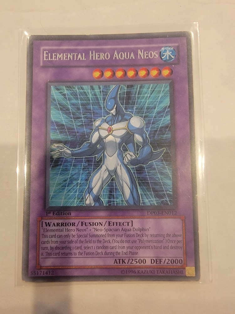 This rare 1st edition Elemental Hero Aqua Neos Yu-Gi-Oh! TCG card is a must-have for any collector. With its water attribute and regular finish, it is perfect for those looking to expand their collection. The card is in LP (lightly played) condition, and its rarity makes it a valuable addition to any deck. The card features the Fusion card type and has been manufactured by Konami. Its English language and DP03-EN012 product code make it easy to identify. Don't miss out on the opportunity to add this card to your collection!