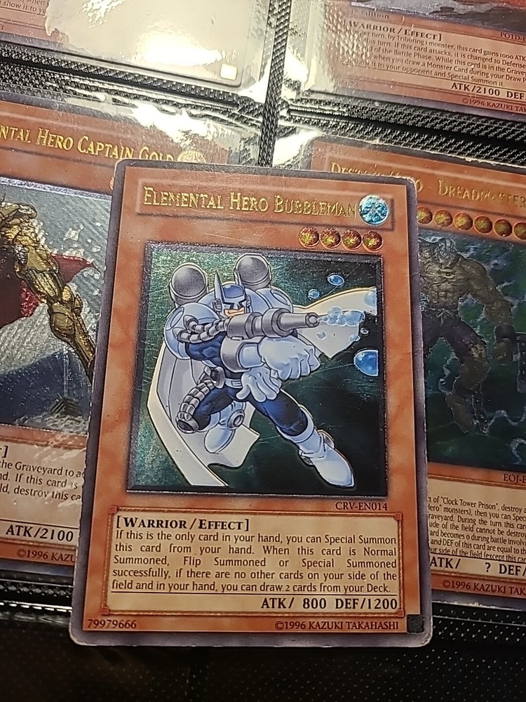 Looking for a rare and powerful Yu-Gi-Oh! card? Look no further than this 1st Edition Elemental HERO Bubbleman from the CRV Cybernetic Revolution set. This Ultimate Rare card is perfect for collectors and players alike, boasting impressive features and a moderately played condition that is still very good. With its striking design and powerful abilities, this Elemental HERO Bubbleman card is a must-have for any serious Yu-Gi-Oh! fan. Whether you're a seasoned player or just starting out, this card is sure to impress. So don't wait ā add it to your collection today!