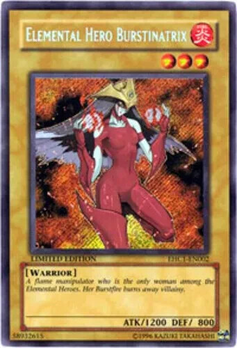 Elemental Hero Burstinatrix (EHC1-EN002) - Secret Rare - Yugioh *FREE SHIPPING This rare and highly sought-after card is a must-have for any serious collector of Yu-Gi-Oh! cards. With its stunning artwork and powerful abilities, the Elemental Hero Burstinatrix (EHC1-EN002) is sure to impress both friends and foes alike. This card is part of the Elemental Hero Collection 1 set and is a Secret Rare card, making it even more valuable and difficult to find. Whether you're a seasoned collector or just starting out, this card is a great addition to any collection. Don't miss your chance to own this incredible card - add it to your cart today!