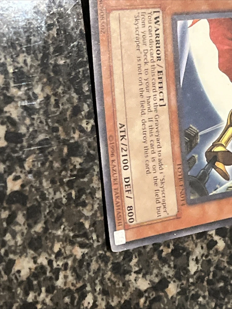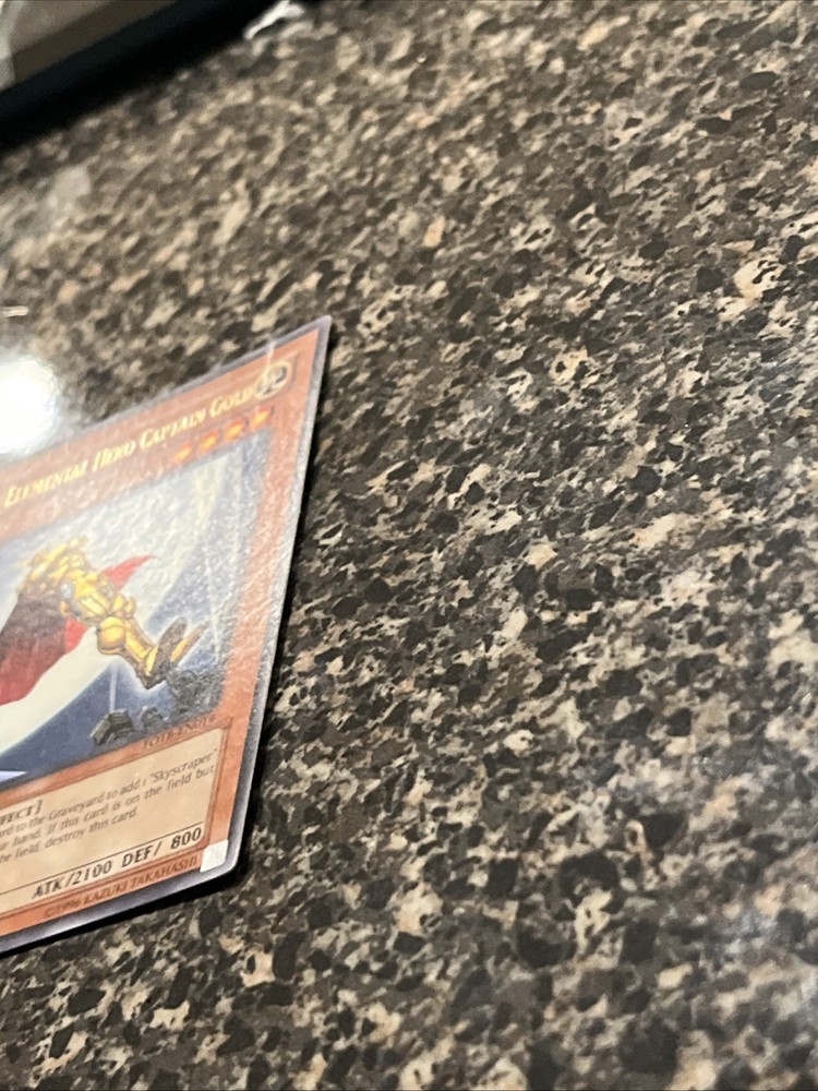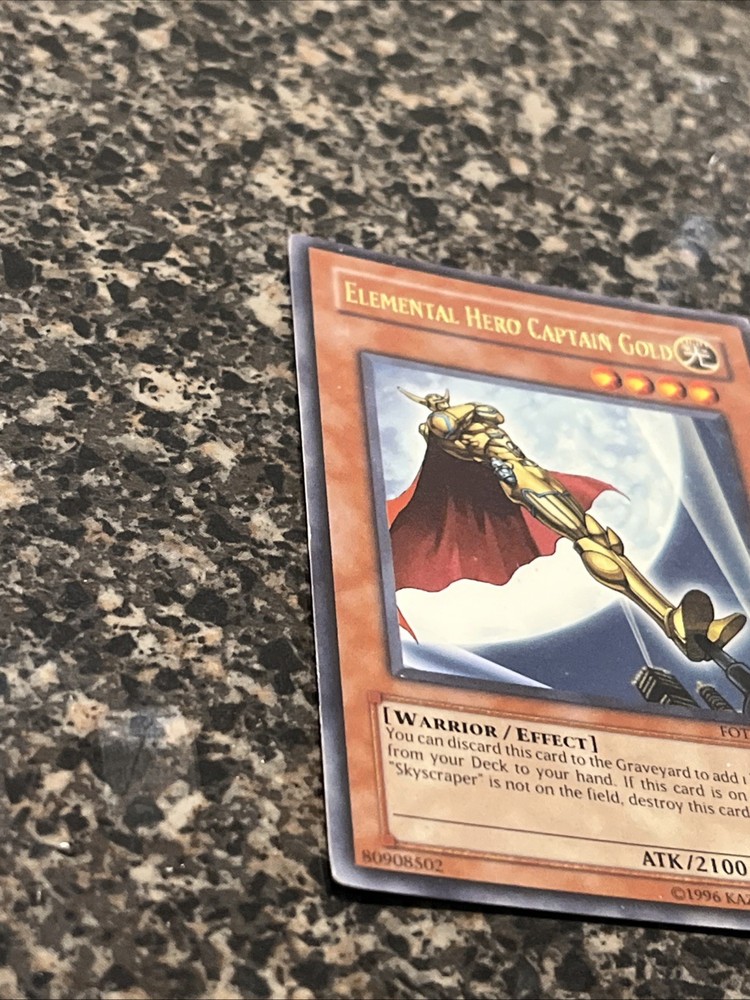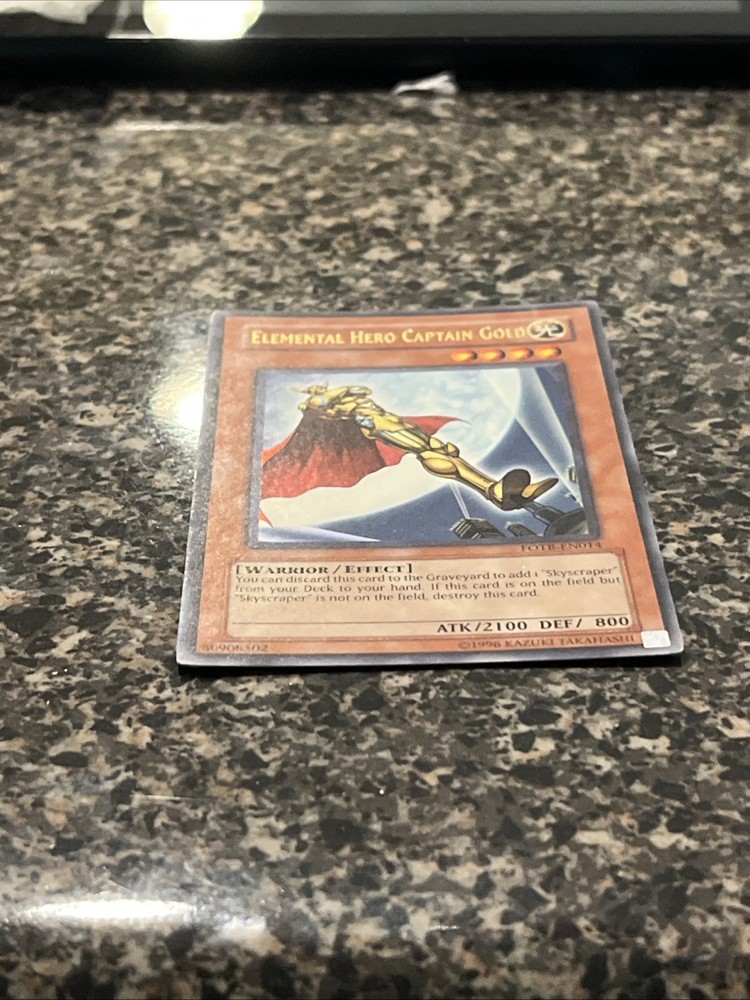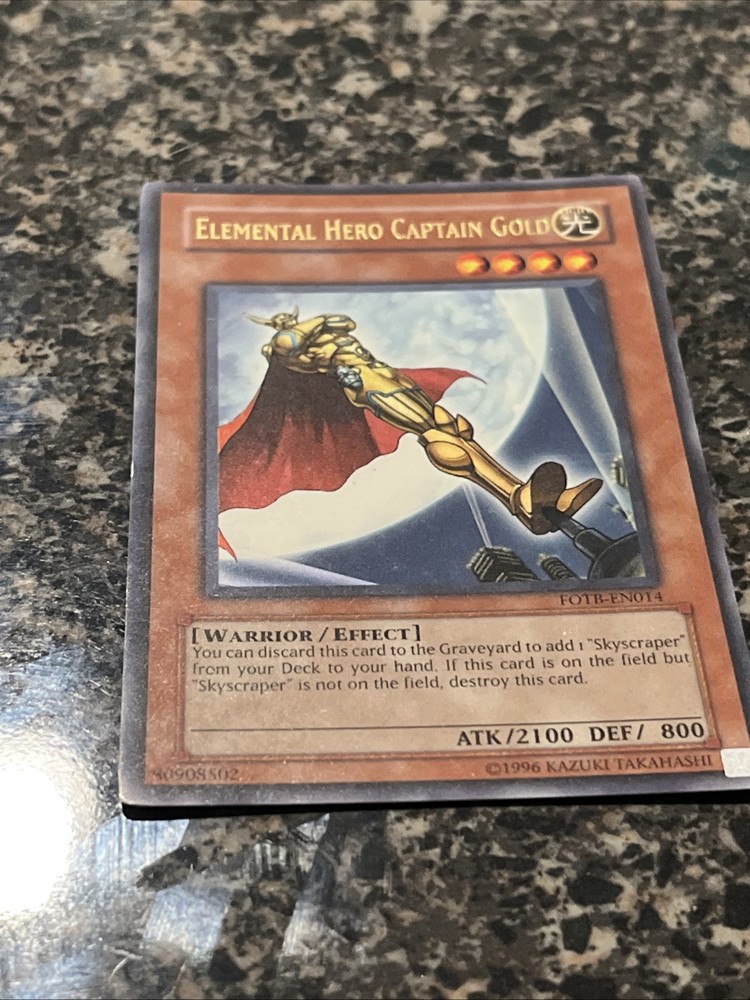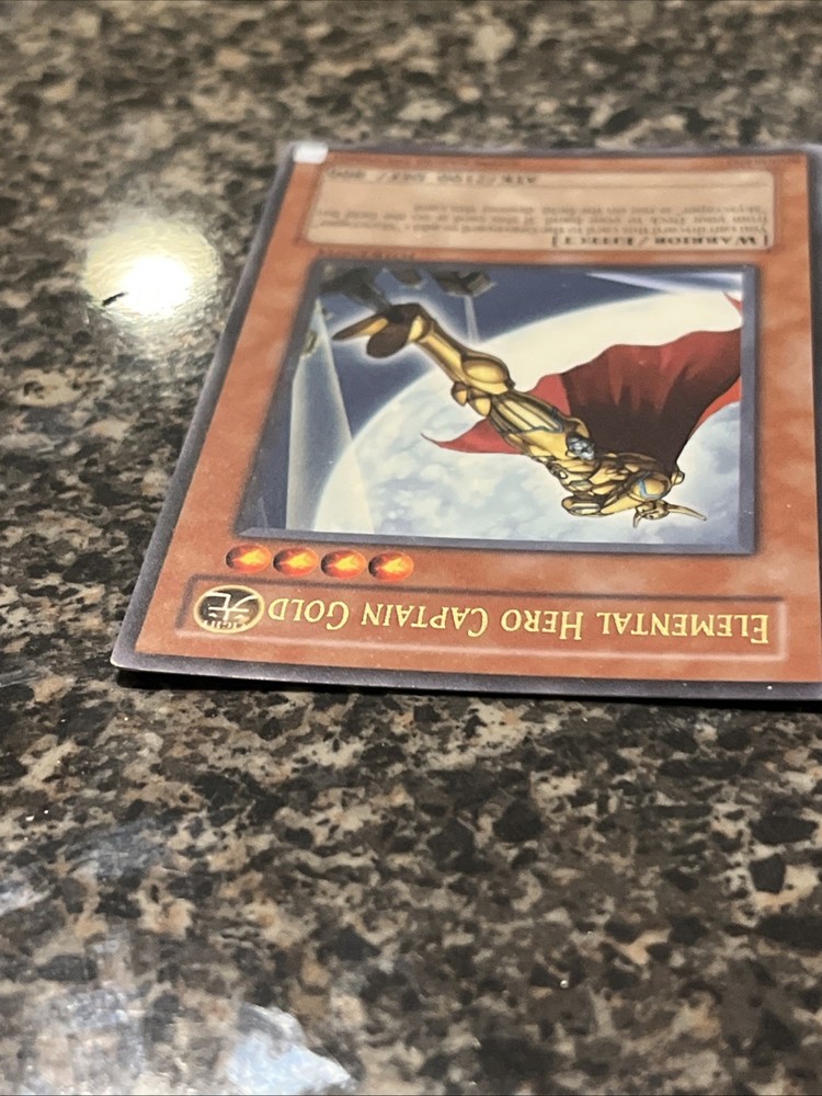 The Elemental Hero Captain Gold card is a vintage collectible card from the Yu-Gi-Oh! TCG set. Featuring a standard card size made of paper, this English language card has a holo finish and boasts a high defense of 800 with an impressive attack power of 2100. As a special effect card, it is a sought-after item for collectors and players alike, showcasing the iconic design and gameplay that the Yu-Gi-Oh! franchise is known for.
