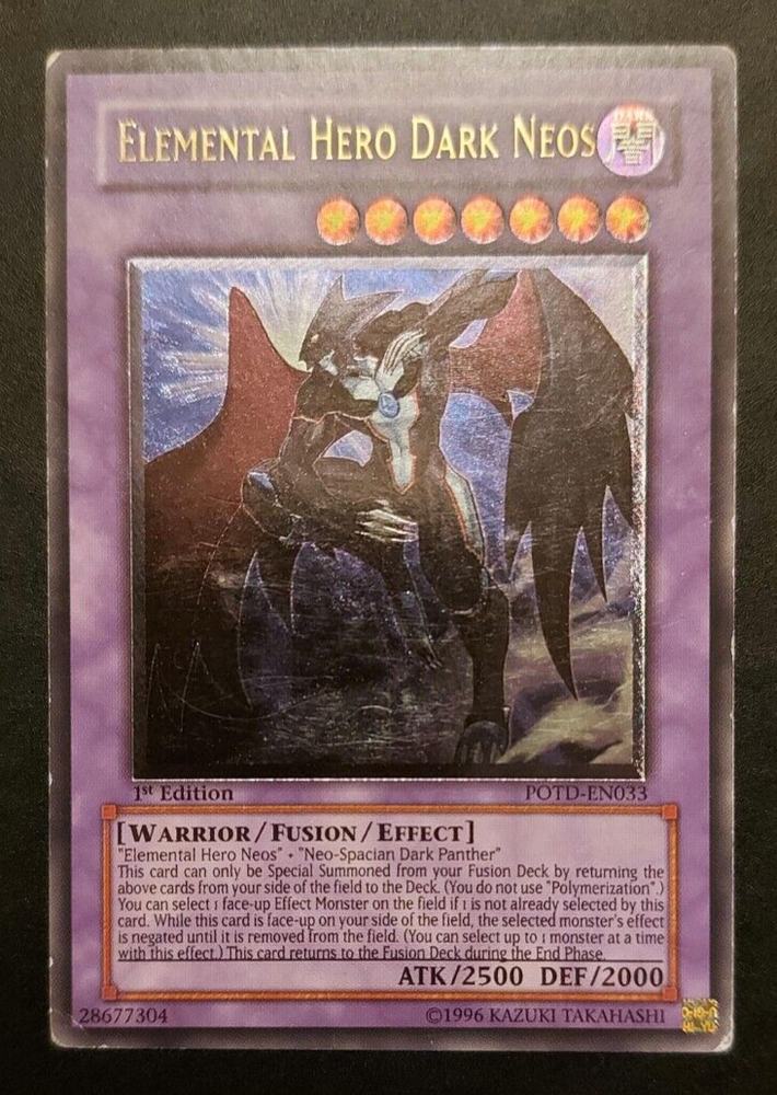 Elemental Hero Dark Neos - POTD EN033 - Ultimate Rare - 1st Edition - YuGiOh Tiny amounts of whitening at the corners. Looks perfect in a binder....