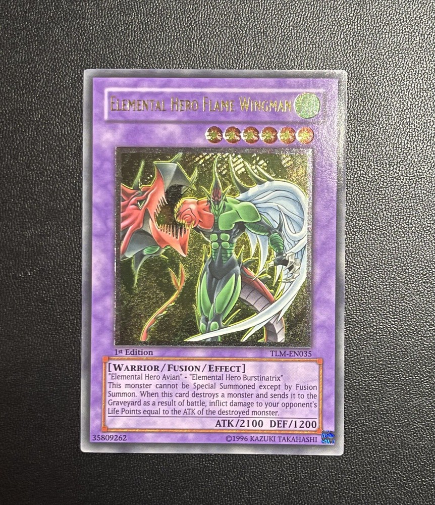 Dive into the strategic realm of Yu-Gi-Oh! TCG with the formidable Elemental HERO Flame Wingman card, a must-have for any enthusiast's deck. Hailing from the iconic The Lost Millennium set, this card boasts the distinction of being an Ultra Rare 1st Edition, marked as TLM-EN035 by Konami. With a robust defense of 1200 and an attack prowess of 2100, this Warrior-type Fusion card is a standout piece. Elemental HERO Flame Wingman not only brings power to the table but also resonates with collectors for its rarity and the nostalgic value of being part of The Lost Millennium series. The card is in English, ensuring wide accessibility and ease of use for players and collectors alike. Whether you're looking to enhance your gameplay or treasure a piece of Yu-Gi-Oh! history, Flame Wingman is a wise addition.